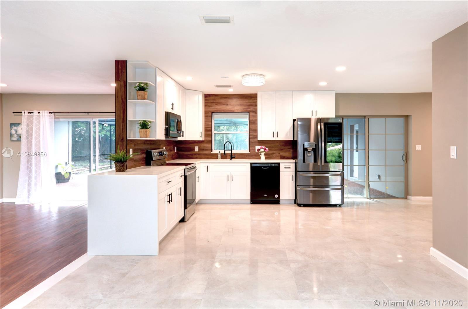 Beautifully designed and completely updated pool home located in the Royal Palm Estates of Plantation, this upgraded 4 bedrooms 2 bath home sit on 15908 sf corner lot, new roof, Interior features breathtaking finishes through out, Gorgeous renovated kitchen with new cabinets, quartz counter tops & newer stainless steel appliances, updated bathrooms. Solid Mahogany wood doors and new front impact windows. Screened patio with pool on a huge fenced lot that features avocado & mango trees. Great location, close to malls and supermarket
