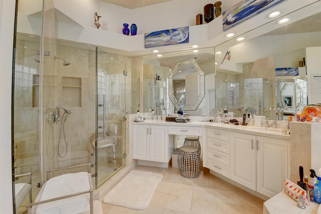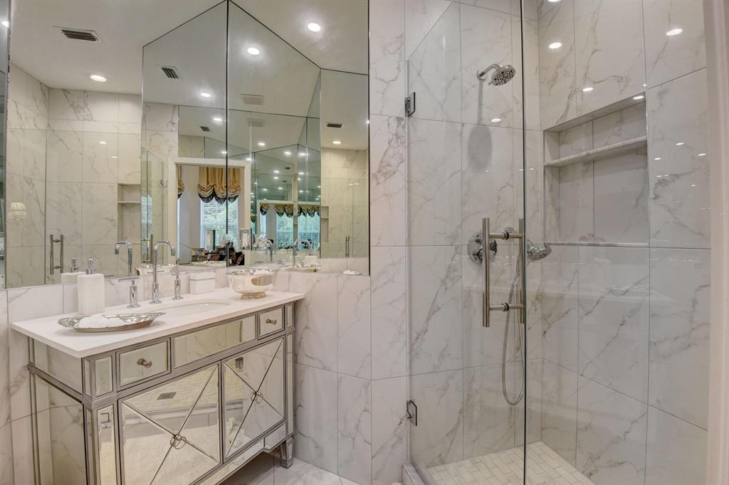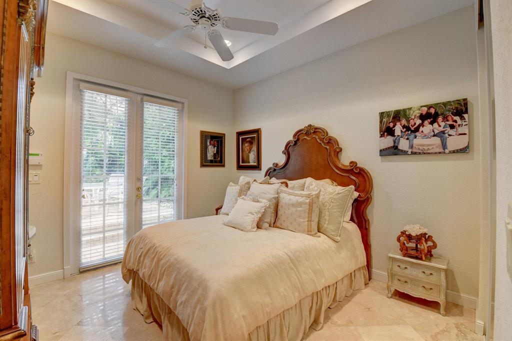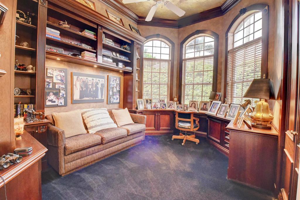 Enjoy total privacy in this spacious & open tastefully appointed one-story home of 5 bedrooms, 3 1/2 baths & a bonus area in the guest wing addition. This beautiful home features volume ceilings with crown moldings; Saturnia marble floors & neutral carpet; an open kitchen with 42'' white cabinetry, white quartz counters & backsplash,stainless steel dishwasher & oven & a charming breakfast nook;a stately library with built-in desk & shelves;elegant built-ins in the Dining Room, Living Room & Family Room; remodeled Master & second bath in the main area; 2 A/C units - 2019; custom window treatments & wood blinds; custom closet design; a full-home generator & more! The private patio offers an oversized pool with decorative fountains & extensive landscape design--beautiful entertaining space