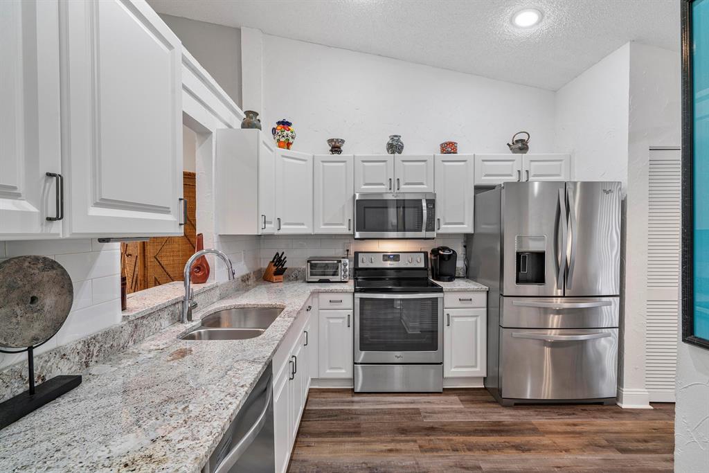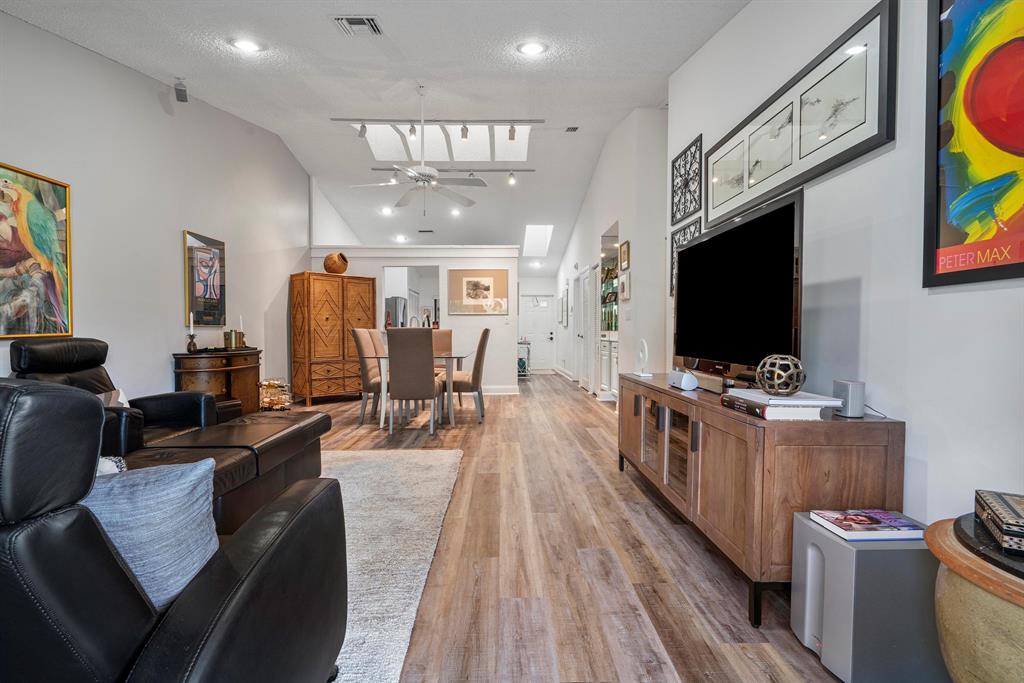 West Boca Raton Townhome in all-age 'Timberwalk' of Logger's Run. Featuring beautiful waterproof vinyl plank flooring, High cathedral ceilings, recessed lighting, 3 sky lights, a surround sound system, 2 Spacious Bedrooms, bright and updated Kitchen cabinets, countertops and Appliances, 2 sparkling clean and sleek bathrooms, Wet bar area, and phenomenal Bonus outdoor living space; which is totally screened in. The front patio area also includes the Hot tub, BBQ Grill, Outdoor Dining set and Flat Screen TV with Sound-bar, plus ceiling fans & sunshade. Great local schools, parks, shopping and restaurants make this home an excellent choice for any financing Buyers, while rates are still so Low. 1 Year Buyer's Protection Warranty Included from Cinch Home Services.