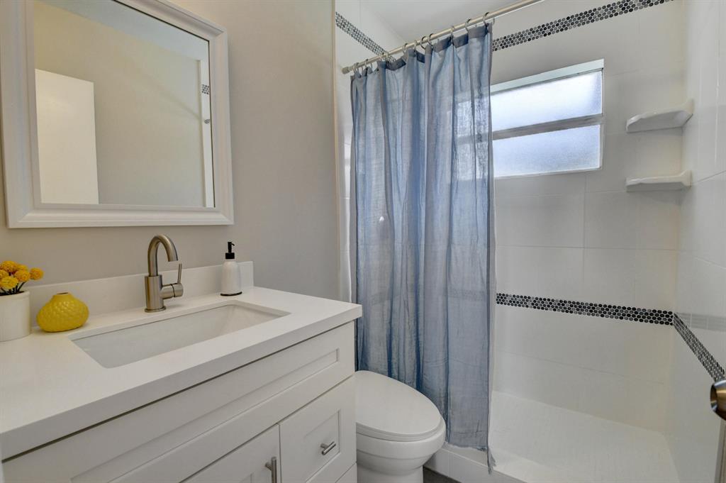 Completely updated, move in ready home with 3 bedrooms, 2 bathrooms and a bonus room. This home has been beautifully upgraded throughout including a new open concept kitchen with new kitchen cabinets, new Quartz counters and new stainless appliances. Both bathrooms have been upgraded and there is new luxury vinyl plank flooring throughout, and a new A/C unit. The screened in pool area is great for entertaining. The home is on a corner lot that has been nicely landscaped. Located in a great school district. Walking distance to Sand Pine Park that offers exercise equipment, racquetball, baseball and a soccer field. Only 2.4 miles to the Beach, Spanish River Park & dog park!