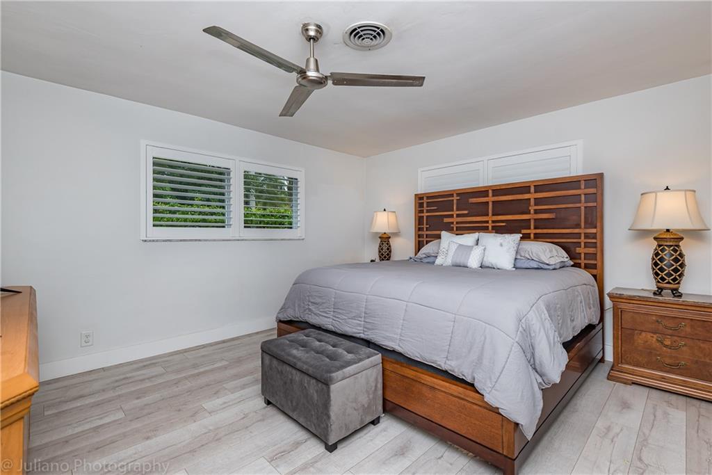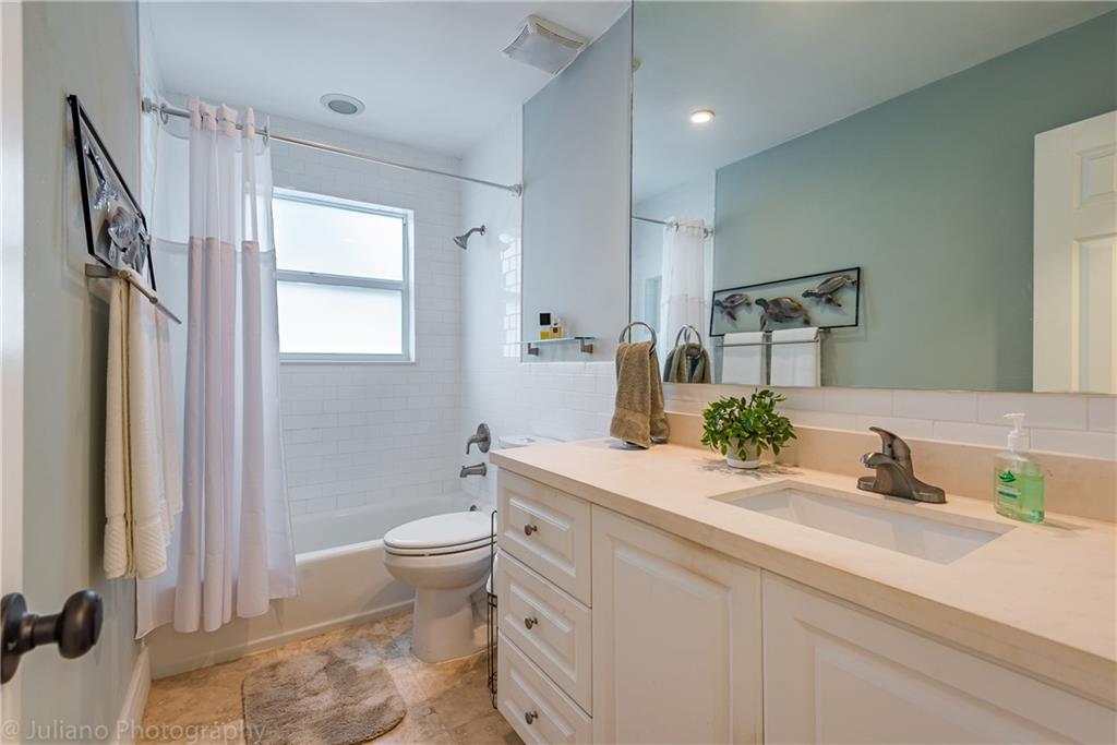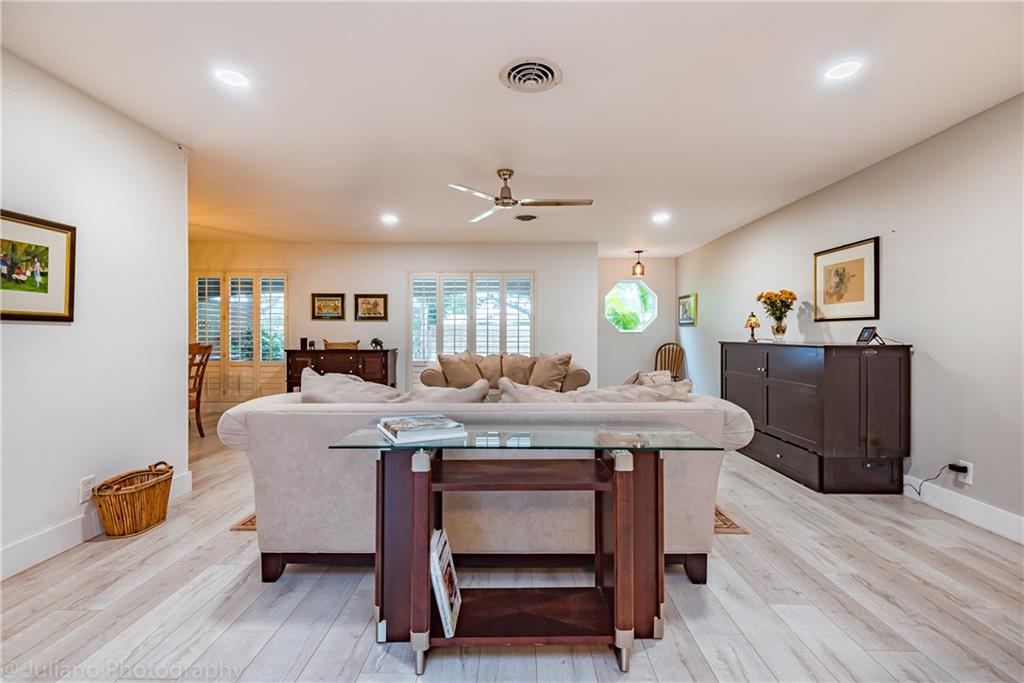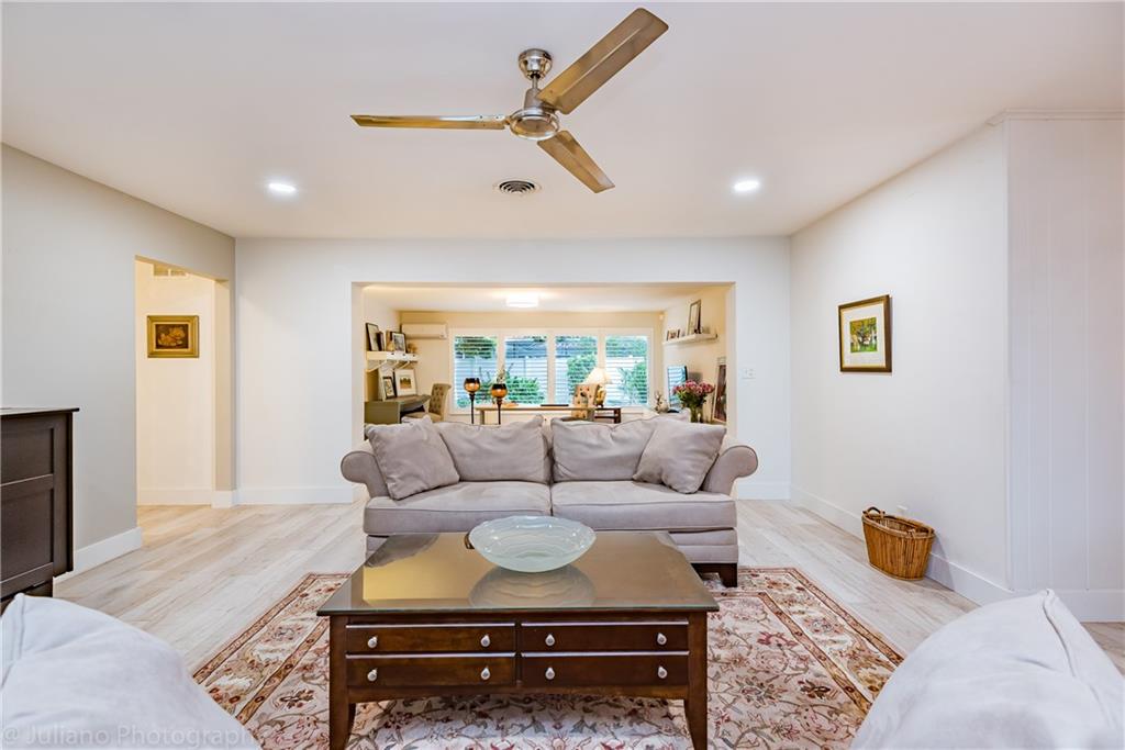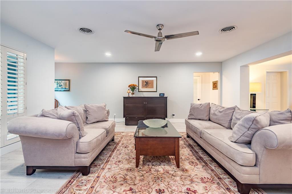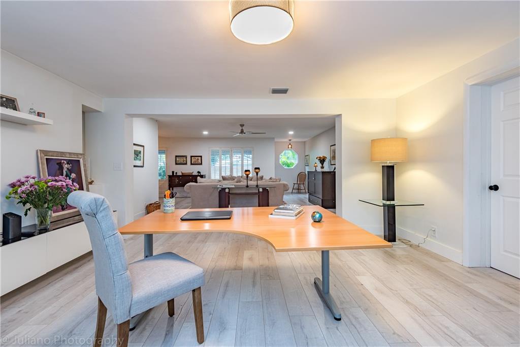 Modern, bright and spacious home in sought after Imperial Point. Wide plank flooring throughout, large office off living room, plantation shutters, and impact windows and doors. Bathrooms and kitchen beautifully updated. Master Bedroom with Walk in Closet. Enjoy the huge screened in Lanai overlooking the garden. Laundry room under air + storage room off carport. This 2BR/2.5 BA home (can easily be 3BR) sits on an oversized corner lot. Just 2.5 miles from the beach, near restaurants, shops, hospitals and more.