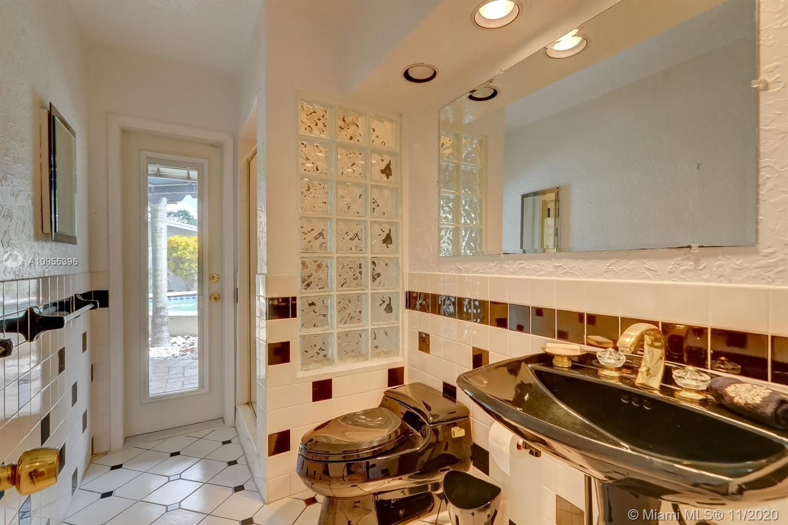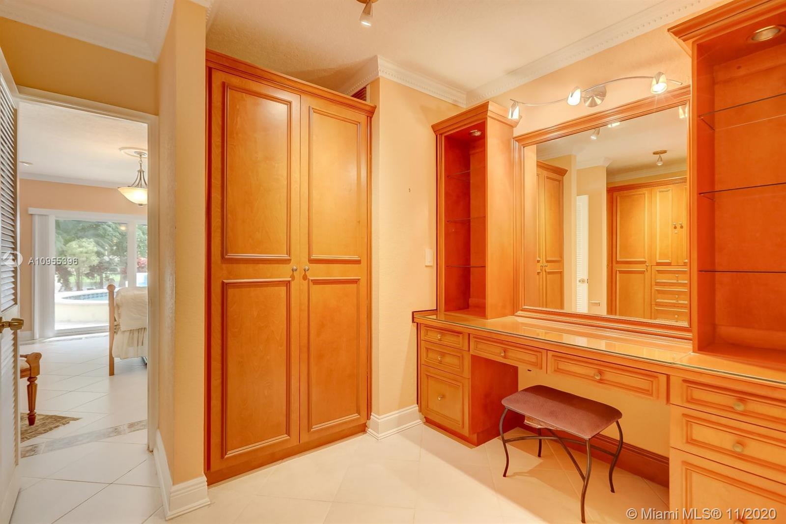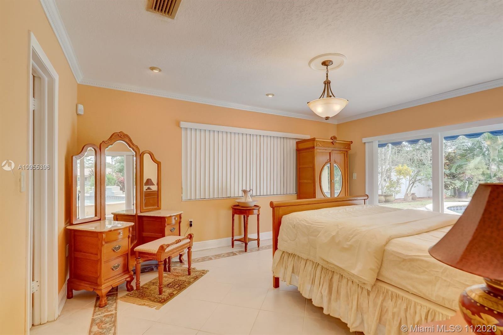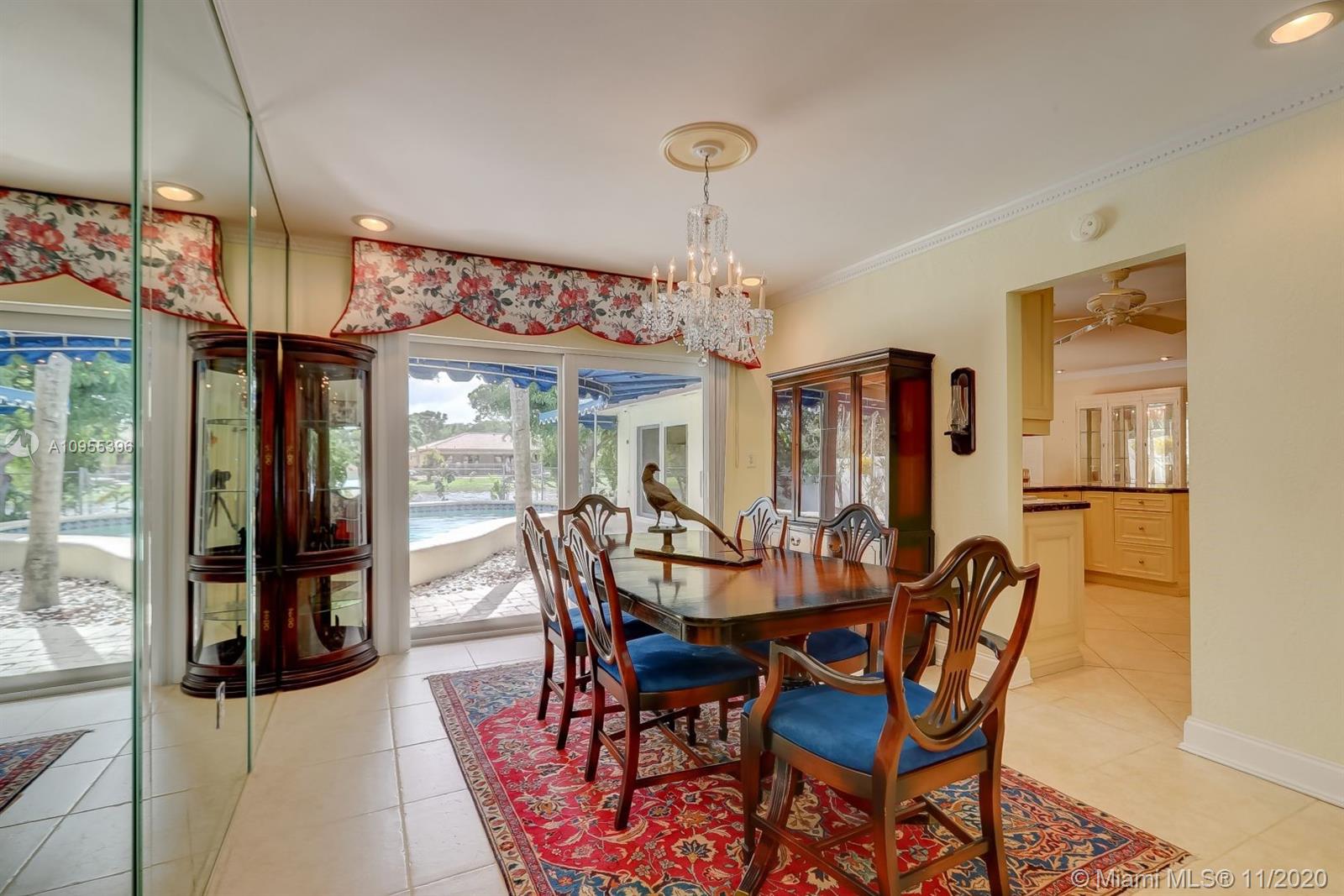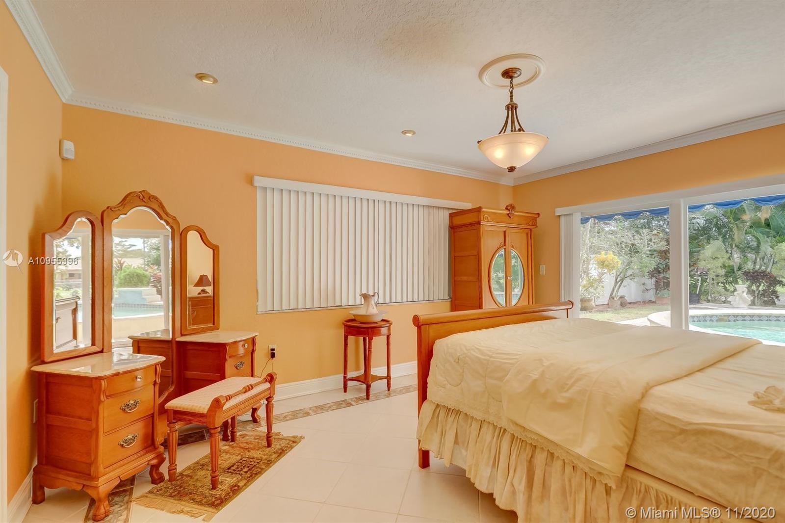 This Meticulously, cared for home shows beautifully. Hurricane sliding glass doors & shutters. Custom kitchen cabinets with spacious storage, featuring designer granite tops & back splash. Custom moldings throughout, Upgraded Custom bathrooms with Marble in master bathroom with separate toilet & bidet, jacuzzi tub, all wood custom closet system in dressing and sitting area. Custom walk-in throughout. House wired with surround sound, built-in intercom system, recess lighting and natural light illuminating each room. Spacious open concept floor plan with multiple views over looking the pool with waterfall feature enjoying the peaceful sounds. Sparkling water views, navigable canal and natural lush landscape showcasing Mango, Avocado, Coconut, Plantains and Guava trees. Your Dream Home Awaits