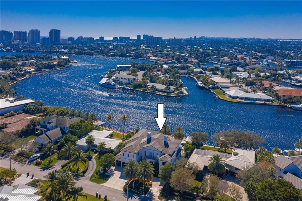 Stunning modern/transitional estate in Sunrise Intracoastal! Designed by Affiniti Architects & built by renowned Sarkela Corp, this custom home is a must see! Grand entrance w/ floor to ceiling windows to showcase the River views. Light & bright floor plan, perfect for entertaining. Features include game room, VIP guest suite, electric shades, formal living & dining rooms, elevator, fireplace & temp. controlled wine cellar. Chef's kitchen w/ double island & high end appliances. Oversized Master bedroom w/ his & hers baths w/ water views. Crestron Smart Home system & full house generator. Enjoy the outdoors all year long w/ salt water pool, oversized jacuzzi, summer kitchen & AC outdoor living space w/motorized solar screens. Walking distance to shopping, Publix, restaurants & the beach.