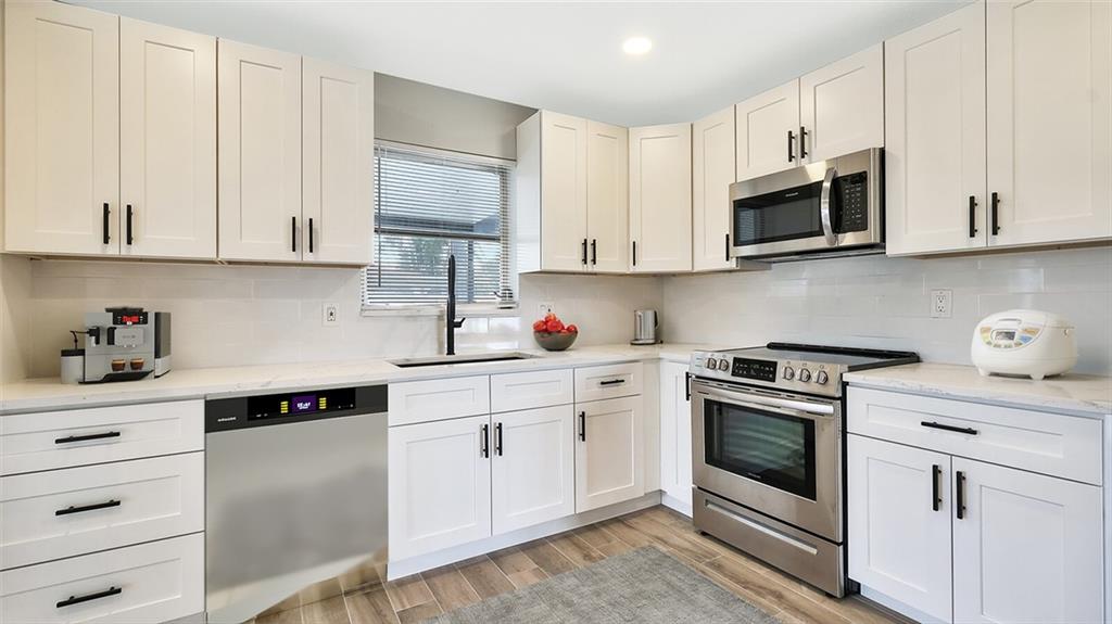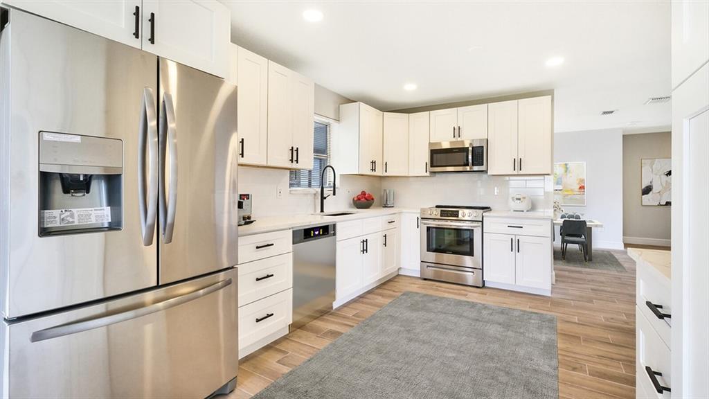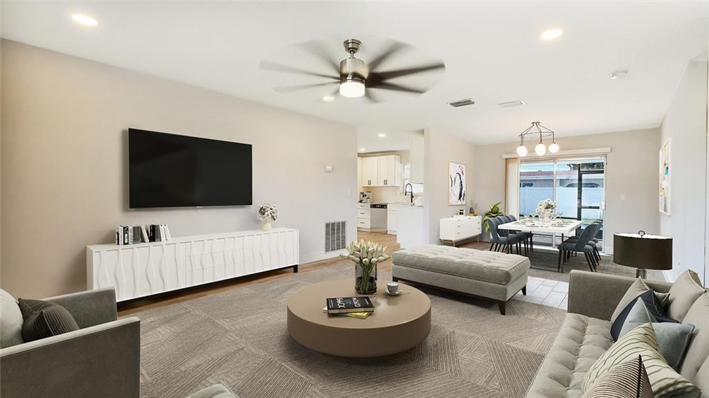 Open & bright floorplan w/ LED lighting! Completely rebuilt & featuring a BRAND NEW ROOF (2020) with a 7 year warranty, & brand new AC (2020). Porcelain wood-look tile throughout the home. Brand new kitchen features high end Frigidaire SS appliances & calacatta quartz countertops. The master bedroom features a large walk-in closet. Master bath updated with marble-like tile and frameless shower glass door. 2nd bath also completely updated! Brand new sprinkler pump and irrigation system (on well so it doesn't run up your water bill) with an OVERSIZED fully fenced backyard (over 10,000 sq ft lot)! Sit under your screened-in patio and look over your tranquil pool view. Brand new washer/dryer. Very low HOA and A+ Rated schools. **PROPERTY IS VIRTUALLY STAGED, NOT REAL FURNITURE**
