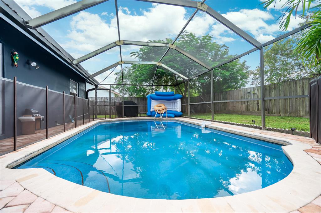 Fully Updated 3 bedroom, 2 bath home in quite West Boca Raton community. Fully remodeled Kitchen with quartz countertops. Open and Split floorplan. Master bedroom ensuite with quartz vanity and barndoor. Beautiful crown molding and built-in bookcases in the living area. Fully fenced Backyard includes screened in pool with baby gate and spacious green space. Privacey hedges line the property. Brand new garage door and Roof is 2017. A+ Rated Schools.