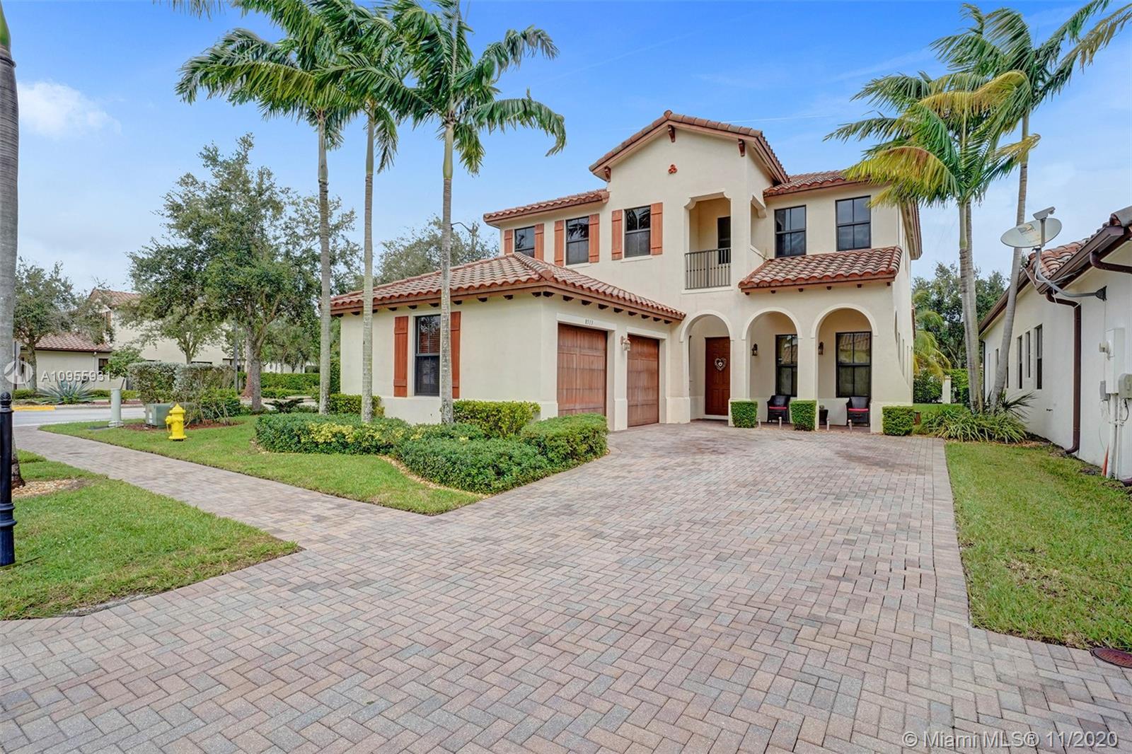 Stunning gated community property in Monterra with a grand entrance. The features of this magnificent TORTUGA model sitting on a corner lot include 3 bedrooms plus a huge loft and 2 baths upstairs, and 1 bedroom and full bath downstairs. This home also features hurricane high impact windows, a huge kitchen, great for entertaining with 42" wood cabinets, granite counters with an island and a second sink, and a workstation desk. The spacious master bedroom features a double door entry and 2 walk-in closets. The private patio and lot on the back have plenty of room for a pool. This 24 hours gated community offers resort-style living, featuring a state of the art fitness center, tennis and basketball courts, pool, walking trails, & tot lots. A+ rated schools.
