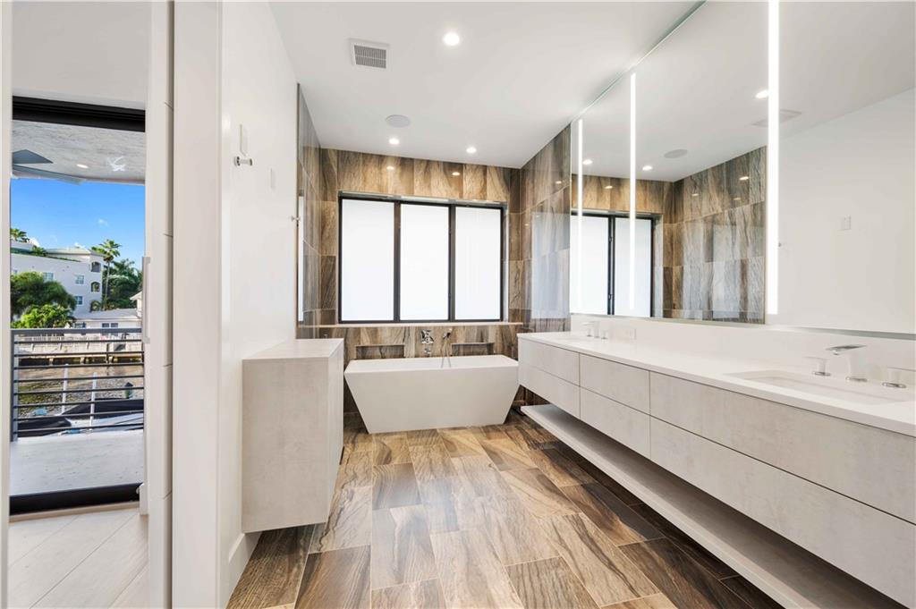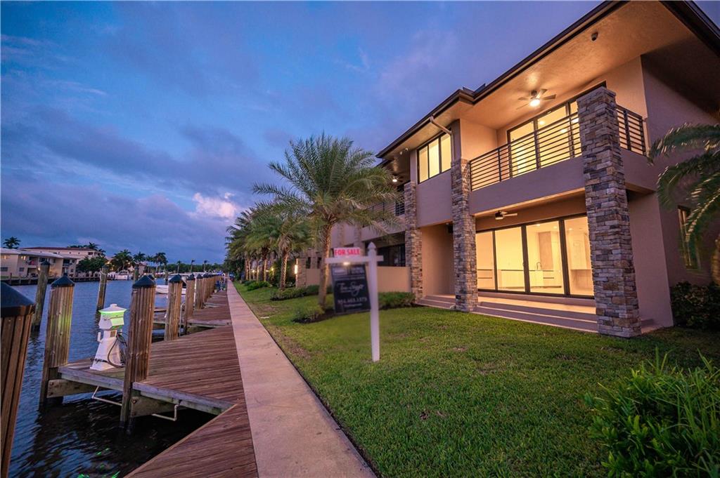 Easy to take care of yet independent NEW Construction waterfront 2-level townhome with private dock for 42' craft, elevator and 2-bay garage with glass door. Corner home with bright sun-lit interiors with high ceilings and walls of sliding doors and windows on three sides. Modern interior has two living areas, porcelain floors, custom cabinets and a wall length buffet, wet bar and media center. The kitchen features seating at both a breakfast bar and the center island. Also Wolf, Bosch and Sub Zero appliances. The second floor landing has a morning bar with sink and fridge. Each bedroom has a bath and generous closet. The Primary bedroom has private balcony and luxury spa bath. Smart home ready with speaker system. Pool ready with pilings already in place. UNDER CONTRACT BUT WE HAVE OTHERS