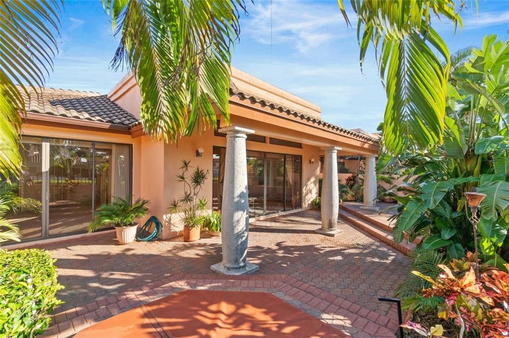 Spacious 3 bedroom, 2 bath ranch in popular Villa Flora in Boca Pointe, that has an amazing country club that does NOT require a mandatory membership. Wonderful curb appeal welcomes you to this courtyard entry home which features a spacious kitchen that opens to large family room with volume ceilings and leads to a private covered patio with lush tropical landscaping on the canal, and an in ground hot tub to enjoy Florida living at it's finest! Huge primary bedroom with walk in closet and ensuite bathroom with separate tub/shower and double vanity. 3 way split bedroom floor plan, attached 2 car garage, central vacuum, A/C, hot water heater and roof 2009. Pets allowed! No rentals the first year of ownership. Priced to sell and based on interior renovations needed.