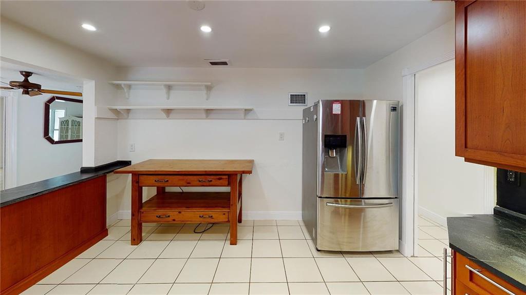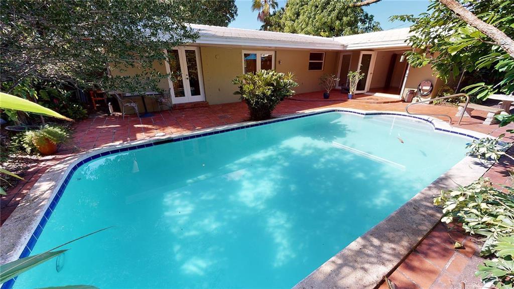 3/2 pool home, one car garage. Lushly landscaped, private backyard. Backyard has many fruit trees including mango, starfruit, banana, and more. Cute courtyard just off the front entryway. Split bedrooms with master to the right and guest bedrooms to the left. Master bedroom has a sitting area/den off of it, accessible to the pool/backyard. Master has large walk in closet. Guest bath recently updated. Large kitchen with tons of space and newer appliances. Bedroom floors just replaced, roof was replaced in 2018, electrical panel updated in 2016, pool refinished in 2019. Huge utility room with washer, dryer, laundry sink. Sprinkler system which runs off a well. House has some impact windows and the rest have shutters. Huge mailbox for Amazon package lovers! Excellent location.