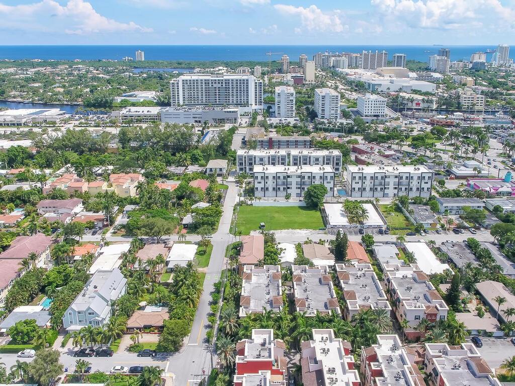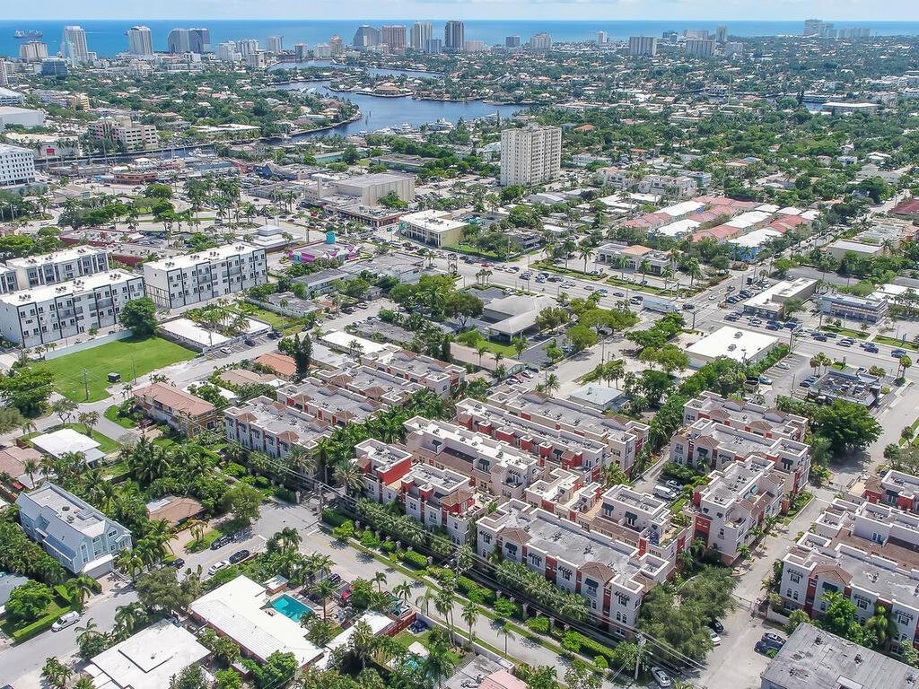 Gated Villa Medici a European Village-Style Complex in the heart of East Fort Lauderdale. Minutes from parks, shopping, the beaches and airport. This well maintained community of town homes offers privacy, security and a community pool. Four floors of living in over 2100 SF of air-conditioned space! Entry level has full guest suite and access to the 2 bay garage. The living level is on Floor 2 with living, dining, kitchen and a powder room. Level 3 offers a sumptuous Primary suite complete with sitting room and two walk-in closets. The top level (4th Floor) has a full guest suite and a walk out roof top terrace. Other features include; 2-zones of air-conditioning, a pantry and walk-in laundry room.