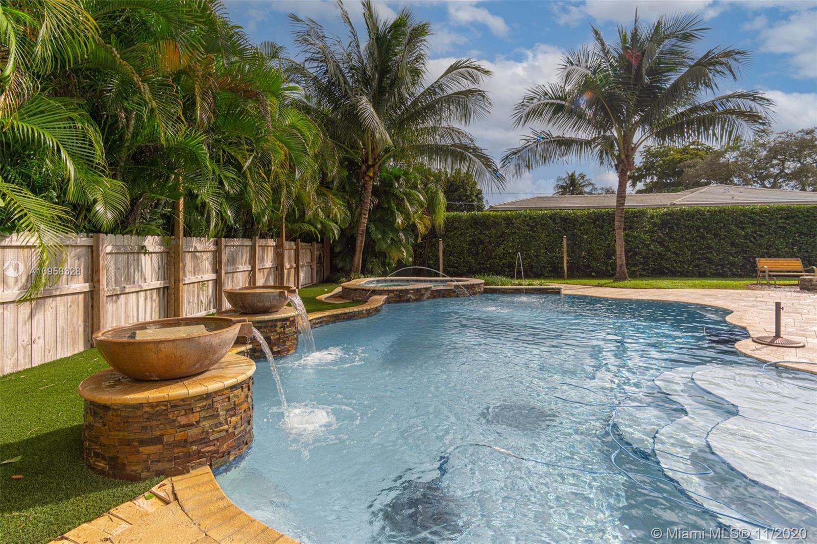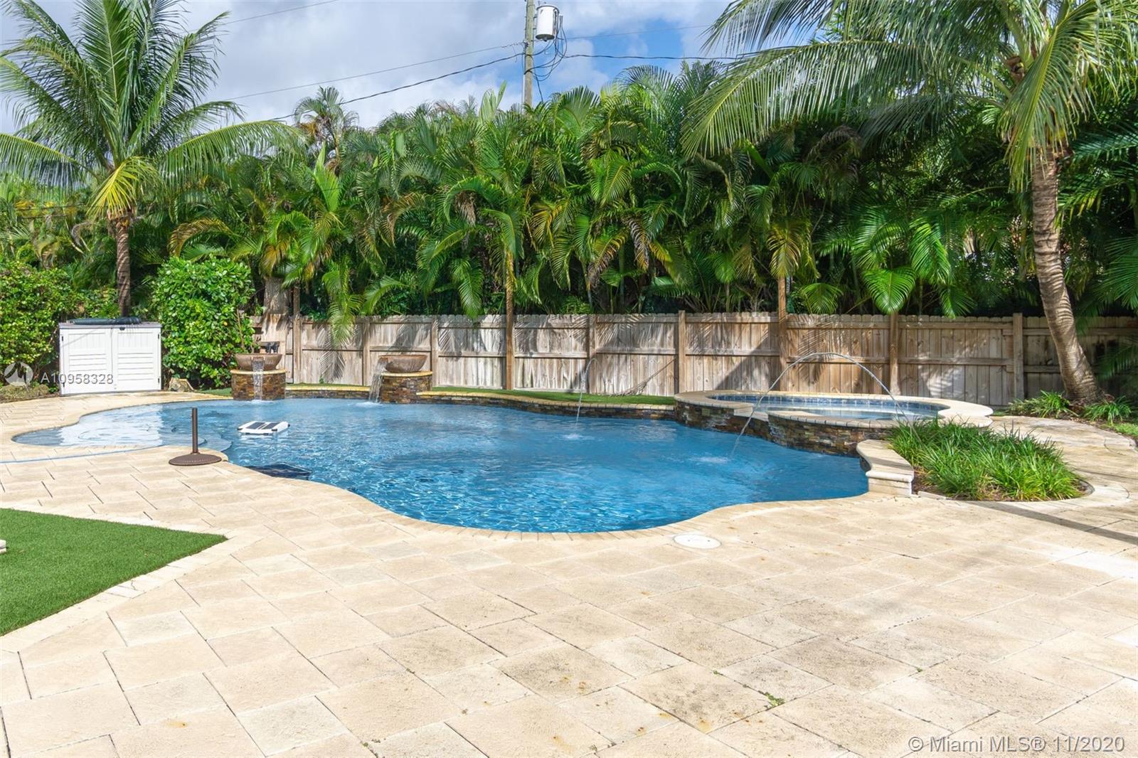 3 BEDROOMS AND 2 FULL BATHS IN MIAMI SHORES. TROPICAL PARADISE WITH COVERED OUTDOOR PATIO. 100% PRIVACY HEDGES SURROUNDING THE AMAZING HEATED POOL WITH FOUNTAINS, WATERFALLS, FASTLANE SWIM JET, SPA AND LIGHT SYSTEM. BEAUTIFUL ZERO MAINTENENCE ARTIFICIAL TURF ADJACENT TO POOL. GAS FIREPIT FOR CHILLY NIGHTS. ATTACHED GARAGE WITH PLENTY OF PARKING AND STORAGE. SEPARATE BACK GATED DRIVEWAY AND NEW FRONT CIRCULAR PAVER DRIVEWAY WITH ROOM FOR GUESTS. OPEN FLOOR PLAN, SPLIT BEDROOM PLAN, WOOD AND TILE FLOORS. HIGH TECH SOLAR A/C AND HOT WATER, ALARM SYSTEM AND LOREX SECURITY CAMERAS, IMPACT WINDOWS AND DOORS, NEWER ROOF.