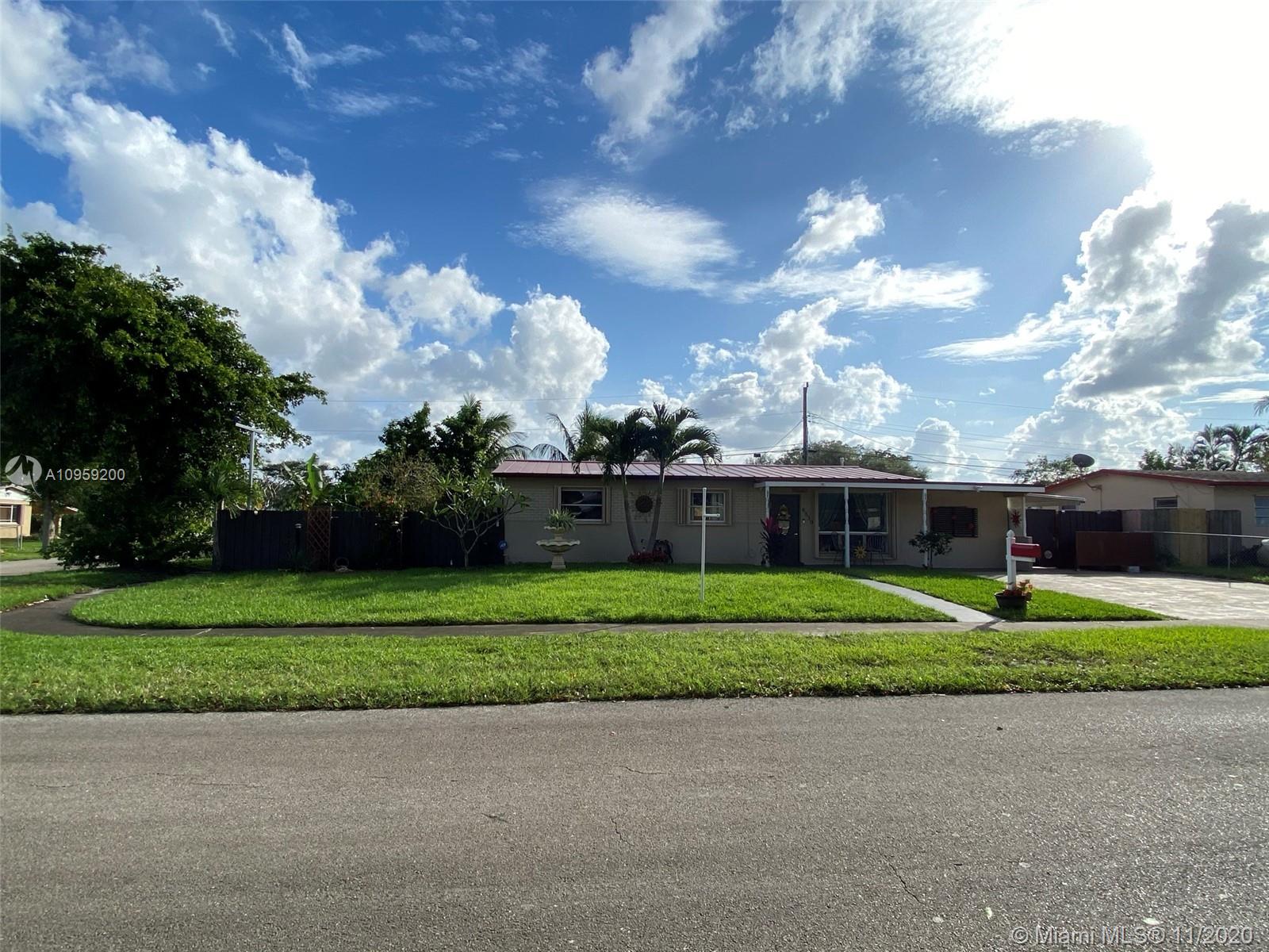 Beautiful pool home on a spacious corner lot with mature tropical trees. This property has four bedroom and three baths which includes an in law quarters with a separate entrance and covered patio. Enjoy Florida living from your spacious screened in patio (bar included), sit and relax by the pond or swim day or night in your private pool. This property features an open concept, granite counters and stainless steel appliances with gas stove, family room, light tile in main areas, metal roof, brand new AC with UV light, accordion shutters, new insulation, tankless water heater, large shed, fenced yard with side entrance, new plumbing under pool and new diamond bright, newer electrical and alarm system. Close to the turnpike, Broward College and quick drive to the beach. No association.