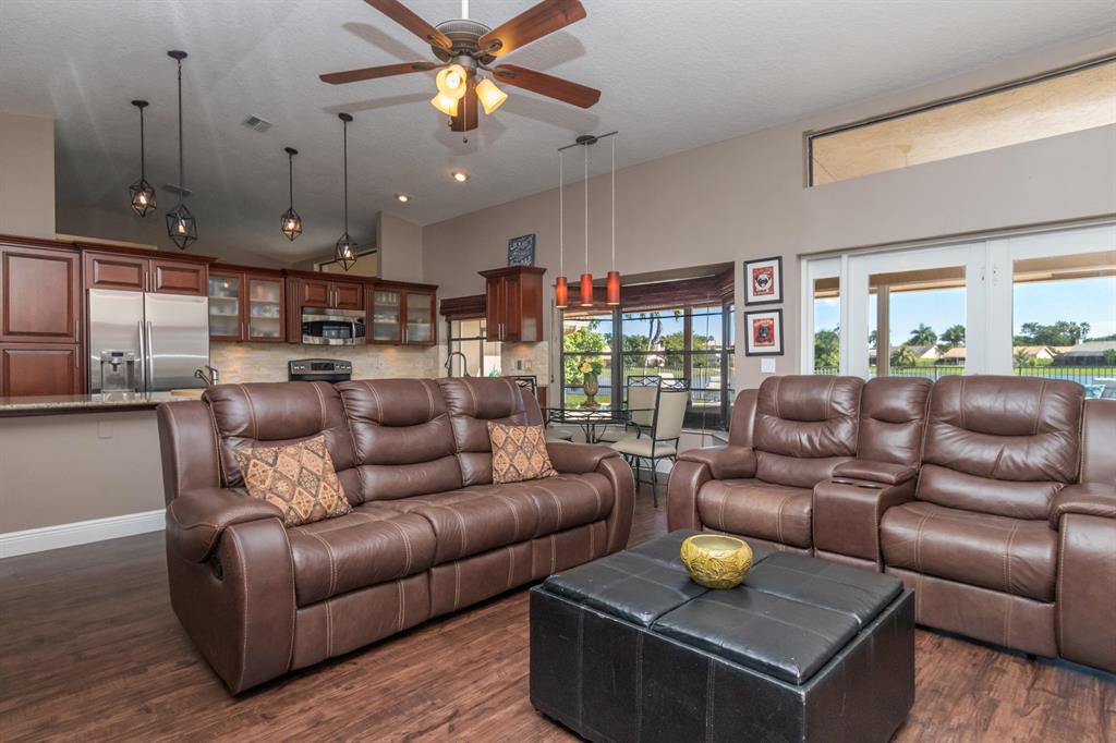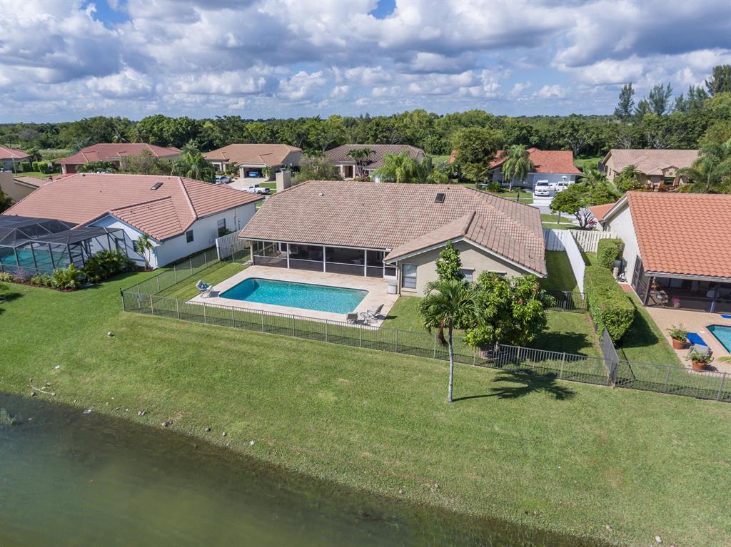 Gorgeous lakefront pool home with southern exposure in gated West Boca community of Island Lakes! This fabulous 4 bedroom, 2.5 bath house boasts an open and airy floor plan with prime water views and an oversized pool/patio area & yard perfect for entertaining. Gourmet chef inspired dark wood kitchen has plenty of storage, pull outs, granite counters and stainless appliances. Family room with fireplace leads out to giant screened and roofed patio overlooking pool with endless lake views. Luxury vinyl tile in all main living areas with laminate in the bedrooms. Master suite has two large walk in closets. Enjoy water views from almost every room. Brand new A/C October 2020, roof 2006, and hurricane protection throughout. Minutes to A rated schools, shopping, dining and South County parks.