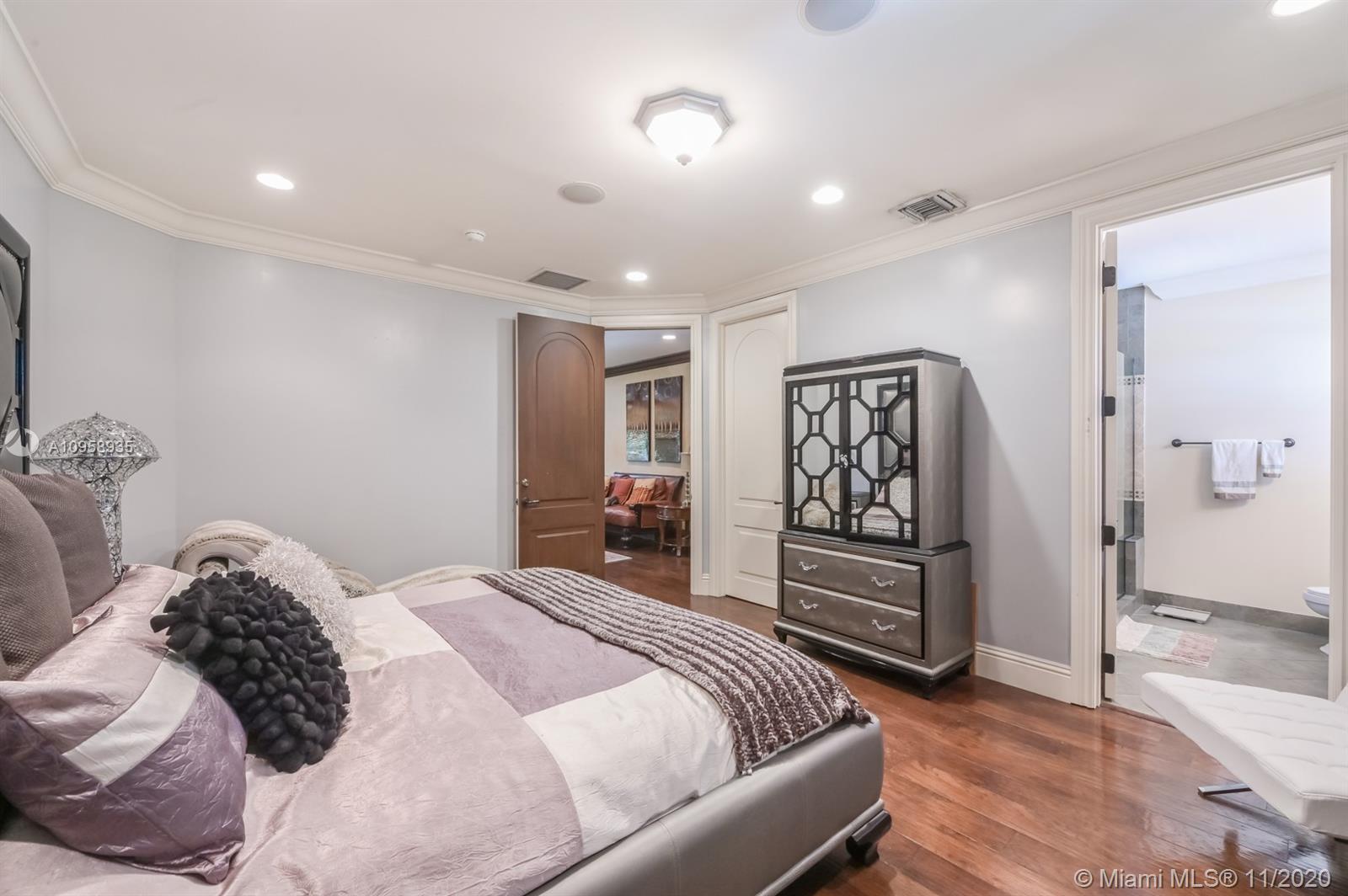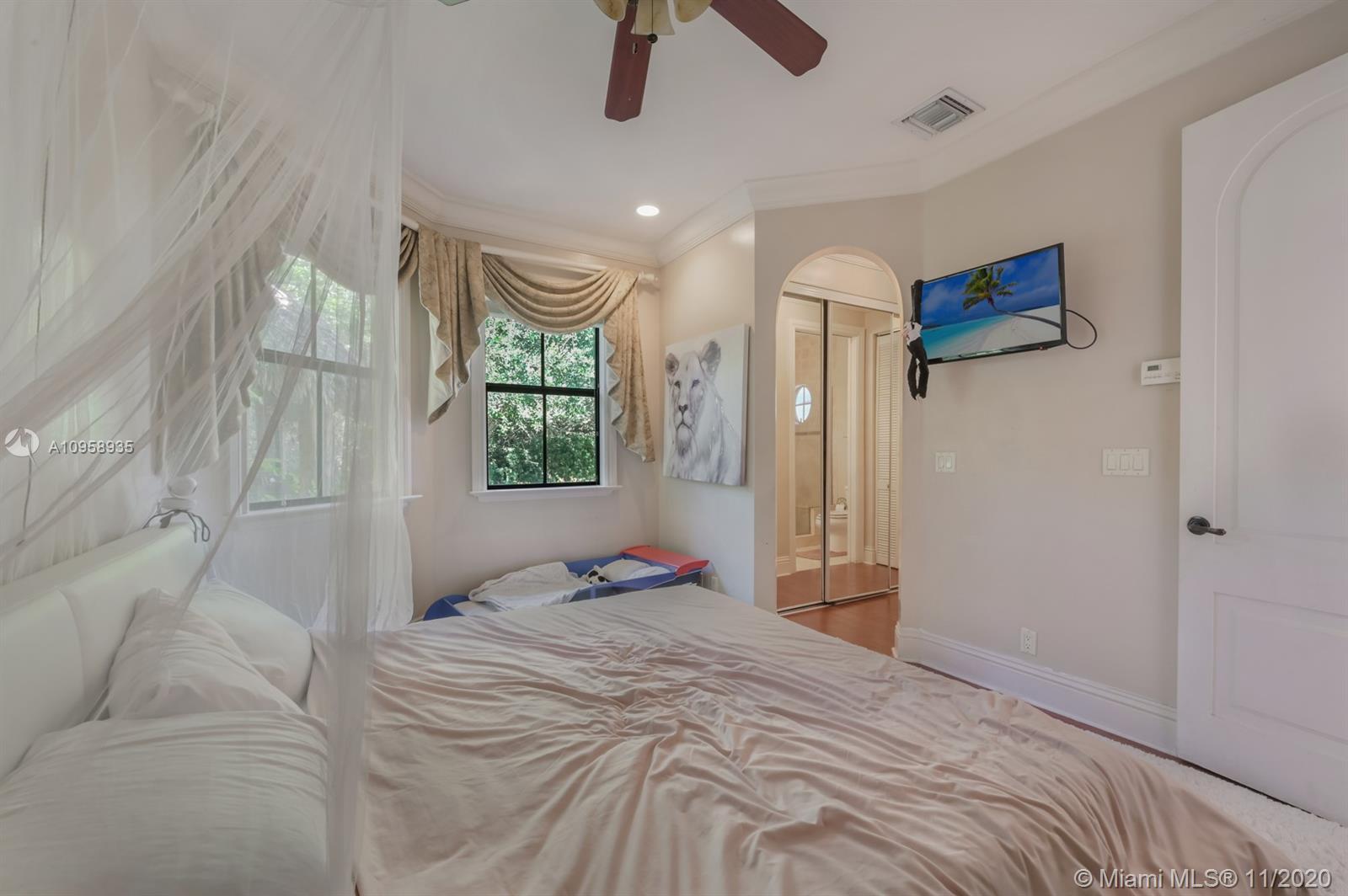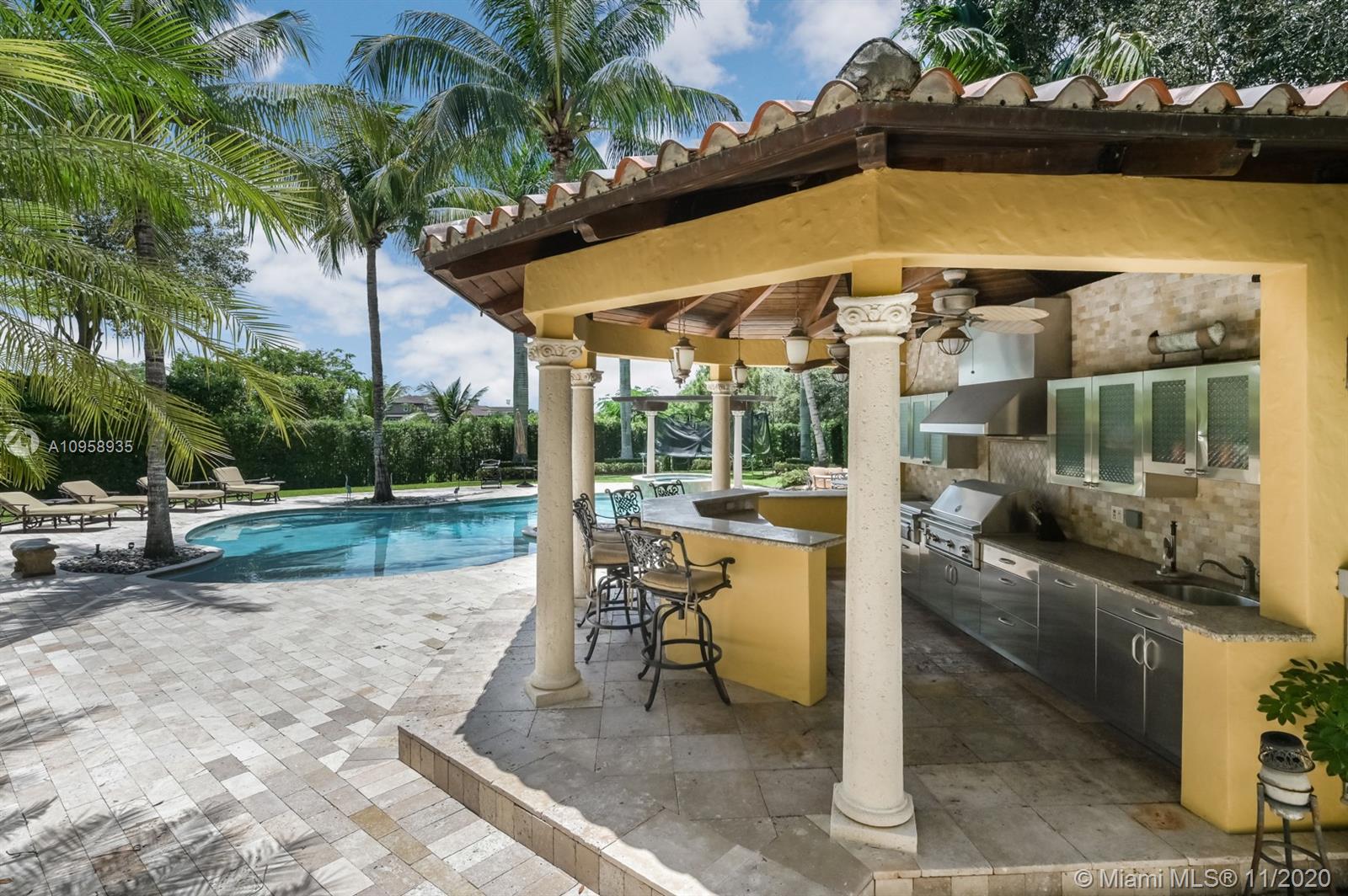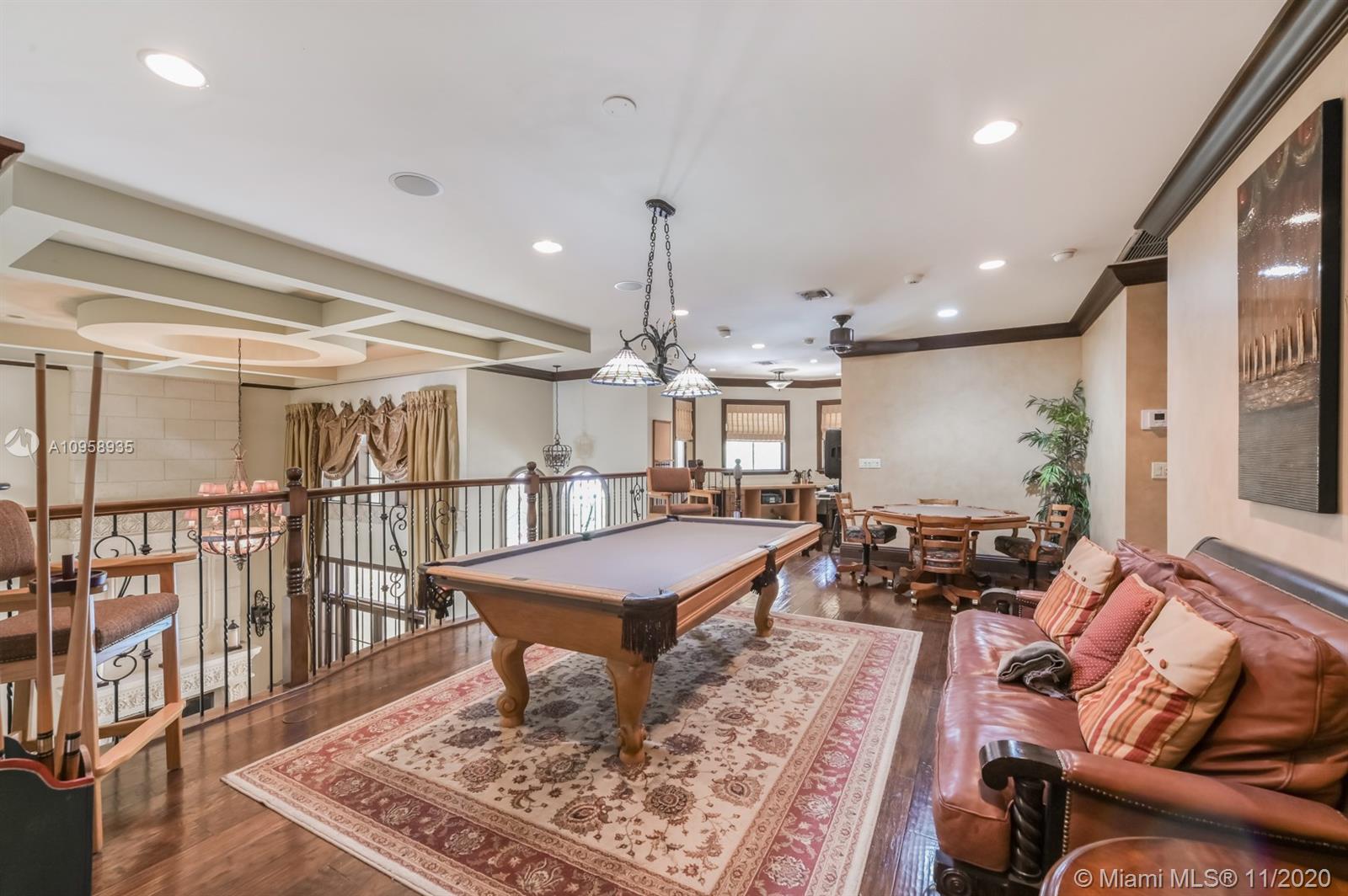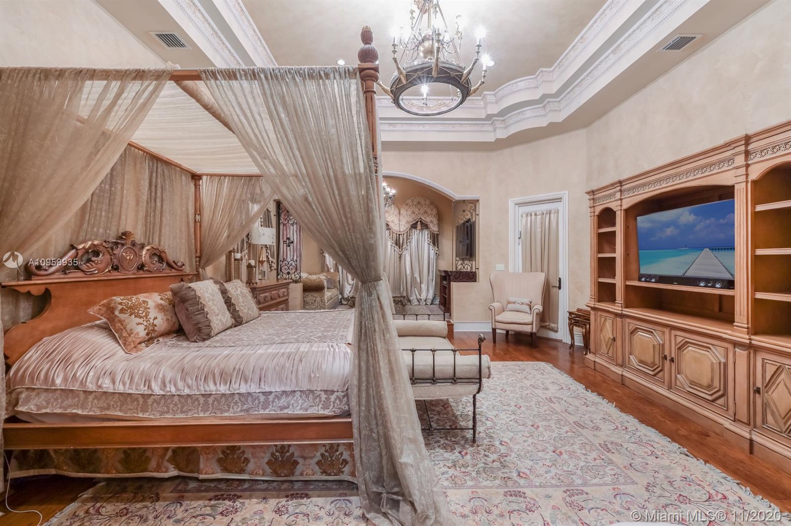 Unique and exquisite with aesthetic details from the traditional Mediterranean home but with the modern comforts of resort style with a focus on indoor-outdoor living. It features a ground floor over-sized master bedroom with large all around marble bathroom and a huge walking closet. Three designer bedrooms upstairs and three full bathrooms. Marble and wood floors throughout the house with delightful artistic paint details on the walls and ceilings. Formal dining and living rooms. Chef style kitchen large enough to sit seven people with sub-zero appliances. Guest house, family room, loft used as a billiard room, desk, Gym and laundry room. Resort style backyard for entertaining a very large group of family and friends, pool and eat in gazebo built in with high end appliances and TV.