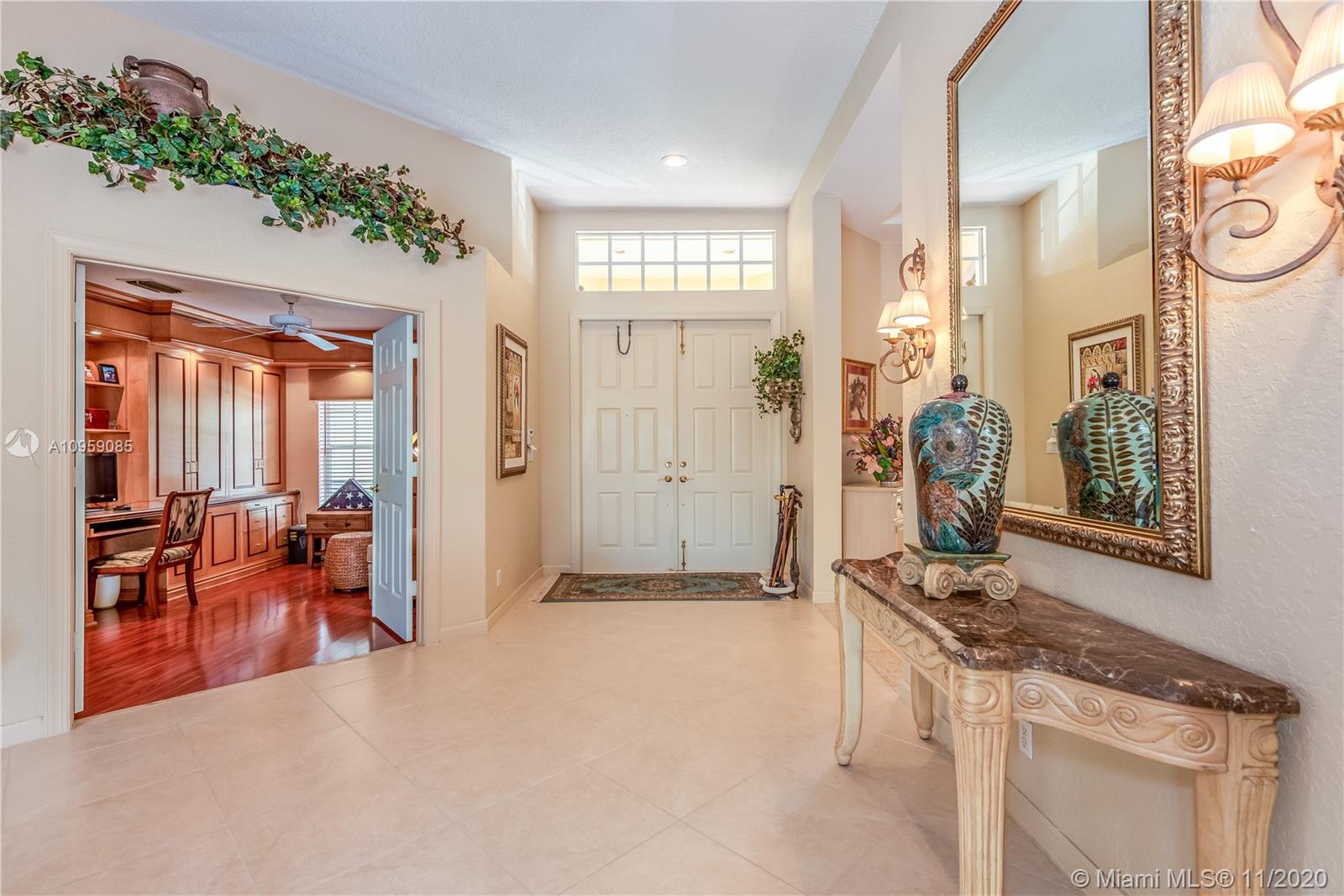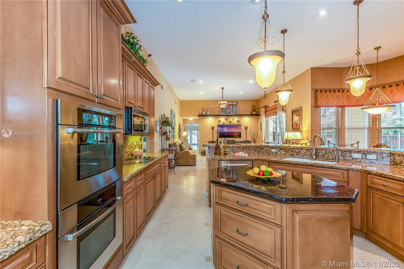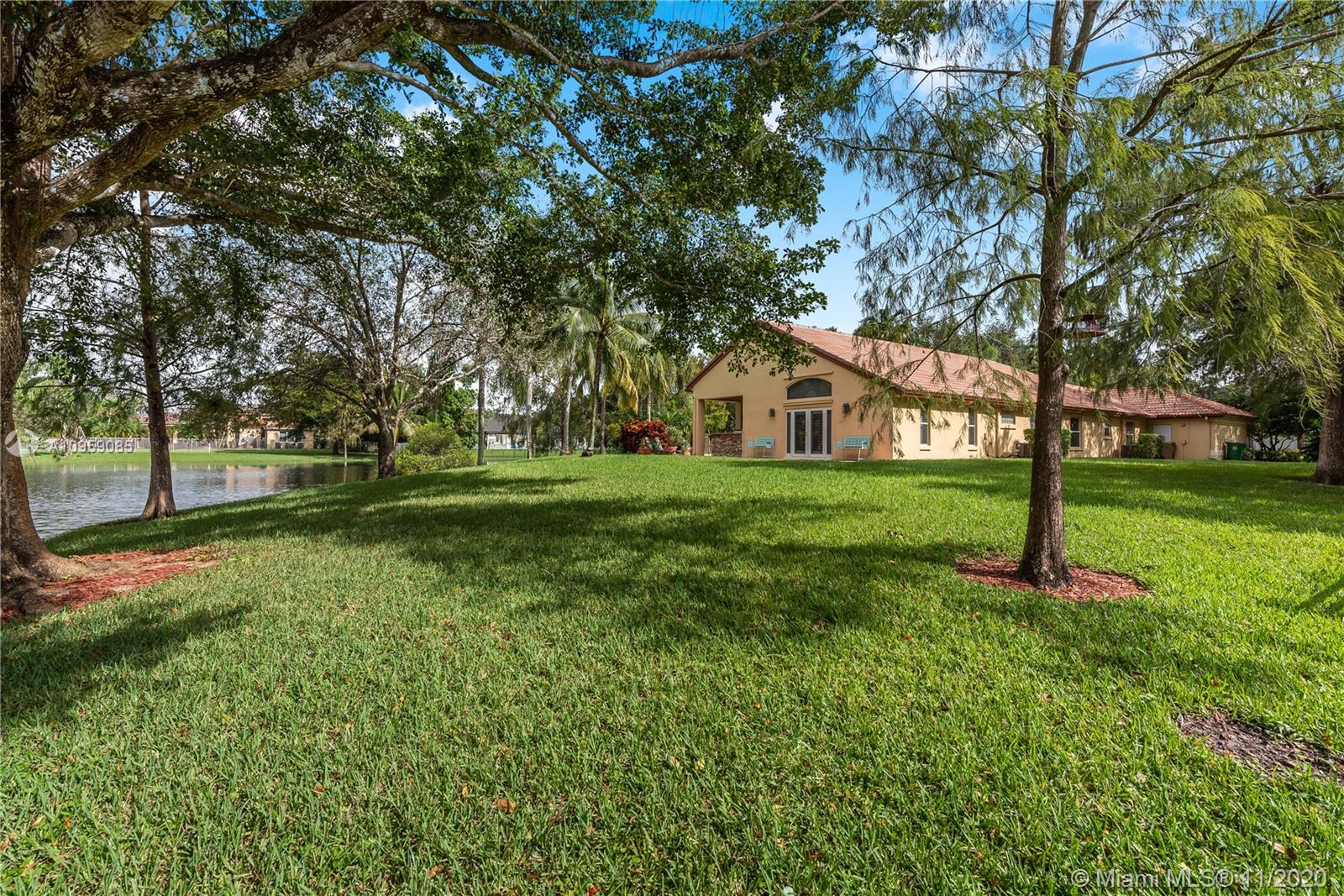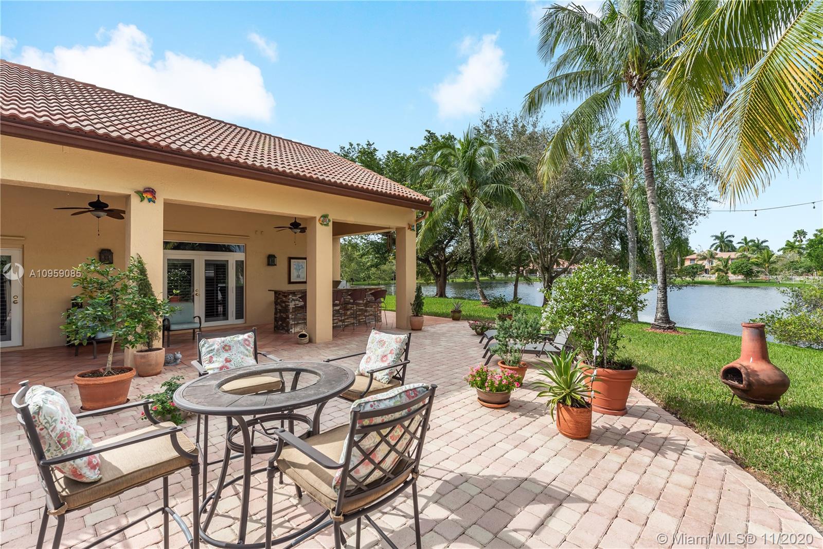 This is one of THE MOST BEAUTIFUL cul de sac lots in all of Davie! Surrounded by water & a park like setting, this outdoor oasis offers stunning peaceful views, large sparkling pool, outdoor kitchen & builder's acre private lot. Step inside to professionally decorated home with over $280,000 in upgrades & features. Huge beautiful kitchen with wood cabinetry, granite & built in fridge. 20x20 porcelain tiles, wet bar, textured ceilings, built-ins & more. Master retreat and upgraded master bath. 5th room is an office with custom cabinetry. HUGE addition complete with recreation & entertaining areas. Interior laundry room AND a mud room off garage. Home Gym. Carlton Ranches is a small boutique gated community with access to biking/walking trails, great schools & highways. This is a HOME RUN!