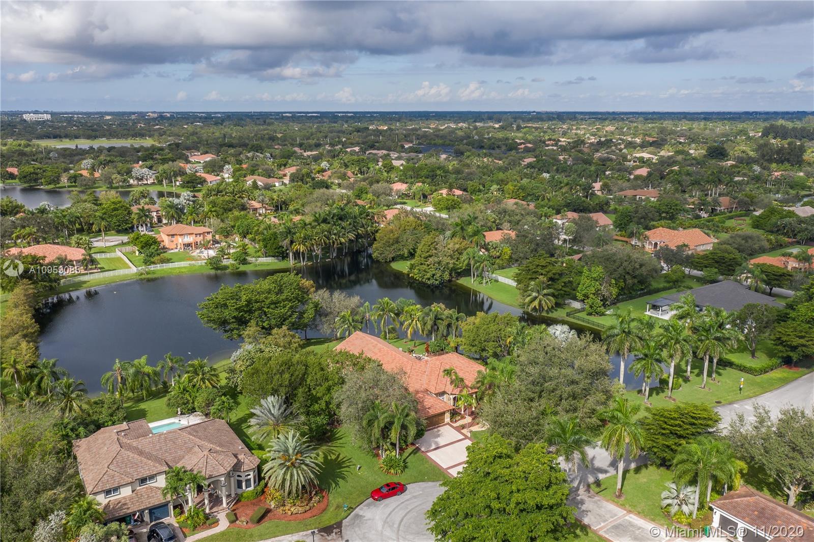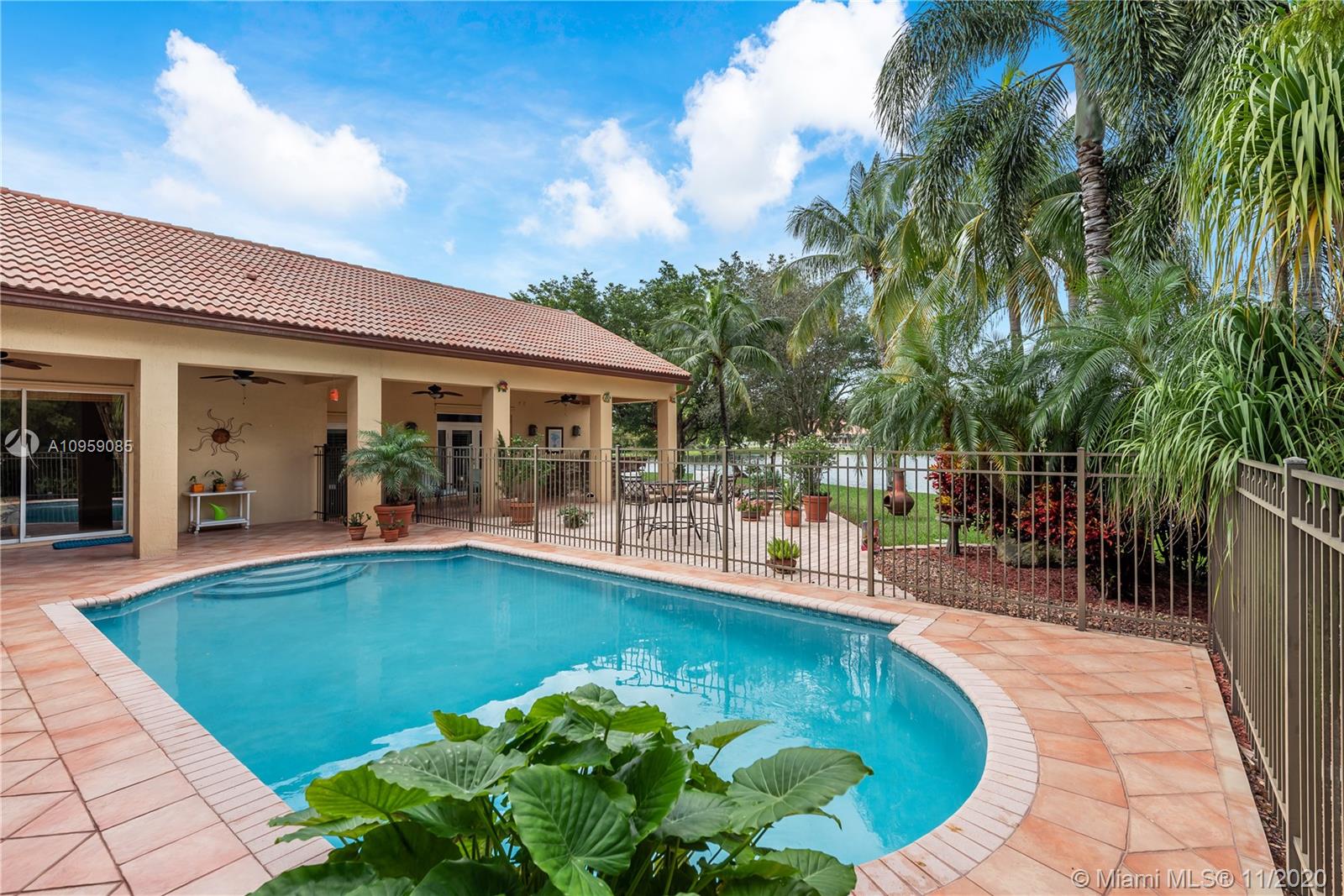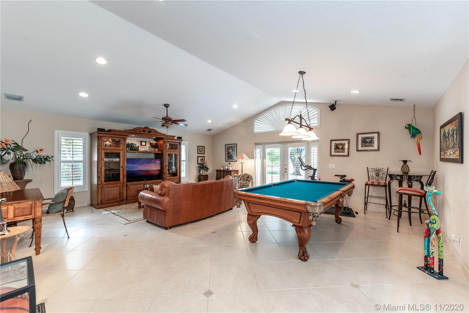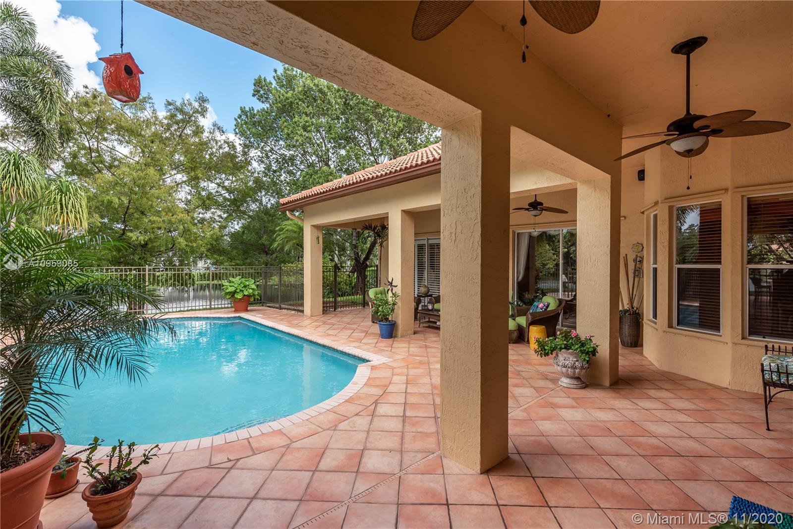 This is one of THE MOST BEAUTIFUL cul de sac lots in all of Davie! Surrounded by water & a park like setting, this outdoor oasis offers stunning peaceful views, large sparkling pool, outdoor kitchen & builder's acre private lot. Step inside to professionally decorated home with over $280,000 in upgrades & features. Huge beautiful kitchen with wood cabinetry, granite & built in fridge. 20x20 porcelain tiles, wet bar, textured ceilings, built-ins & more. Master retreat and upgraded master bath. 5th room is an office with custom cabinetry. HUGE addition complete with recreation & entertaining areas. Interior laundry room AND a mud room off garage. Home Gym. Carlton Ranches is a small boutique gated community with access to biking/walking trails, great schools & highways. This is a HOME RUN!
