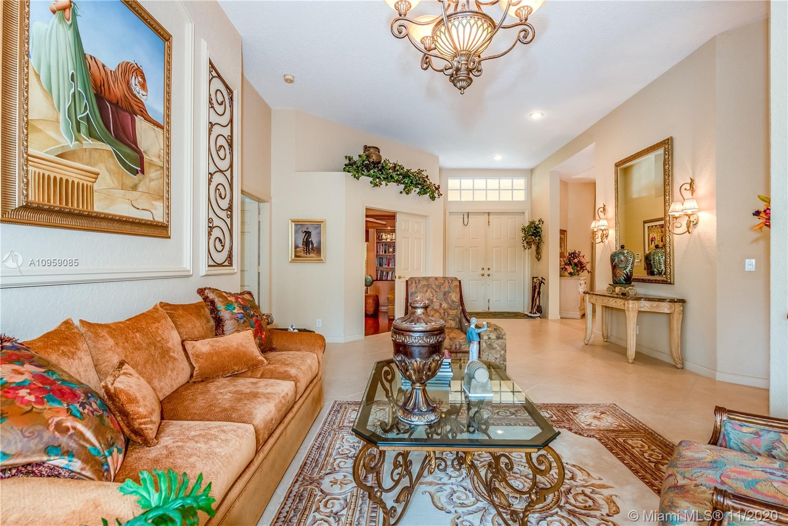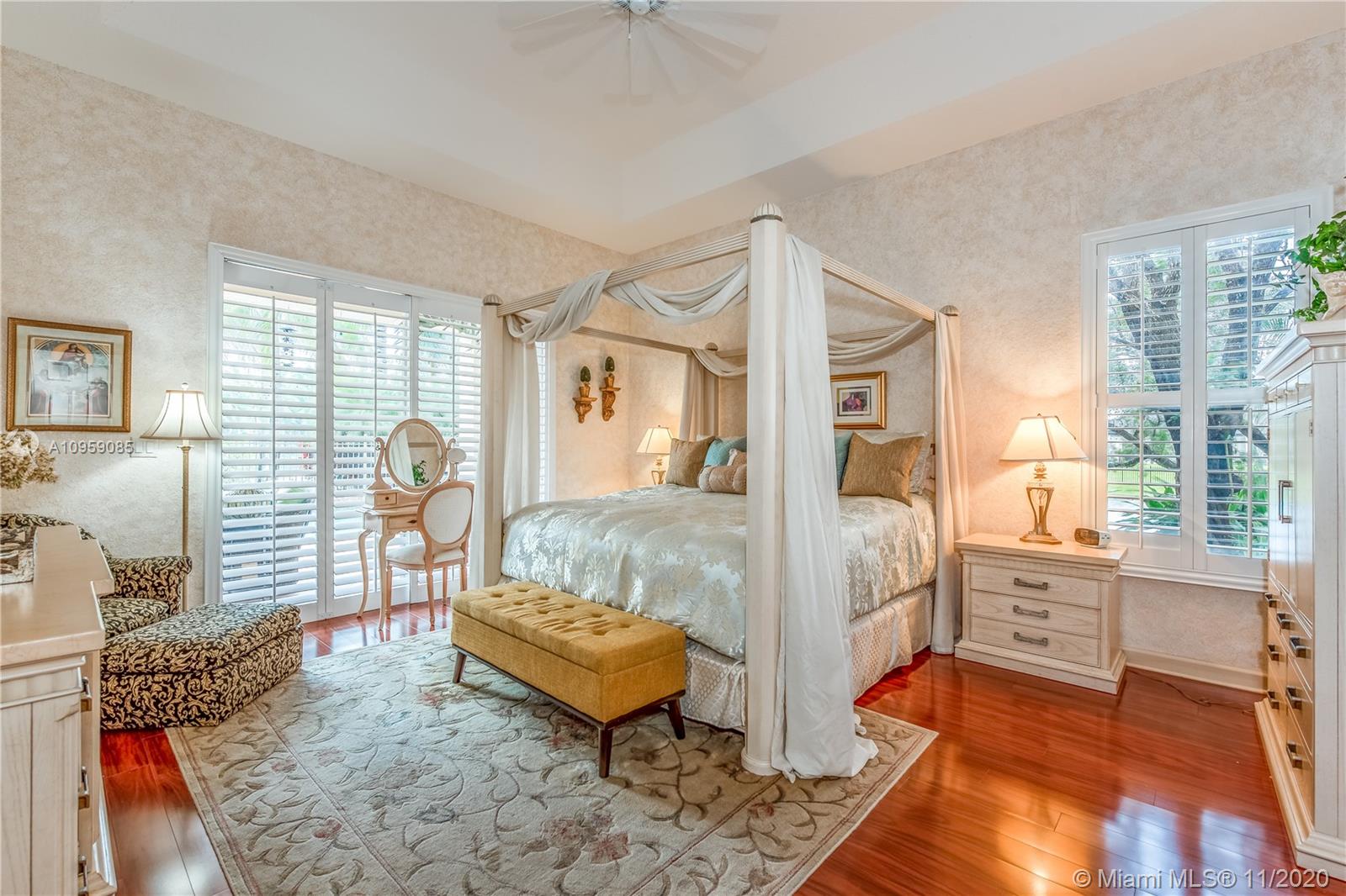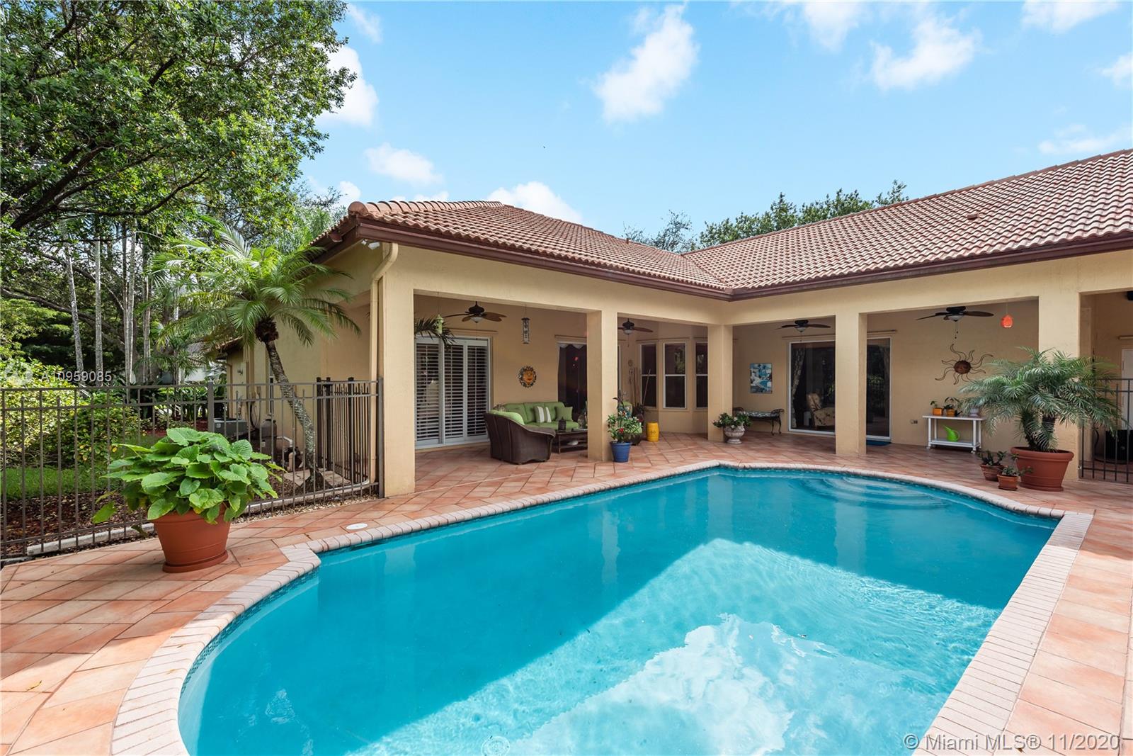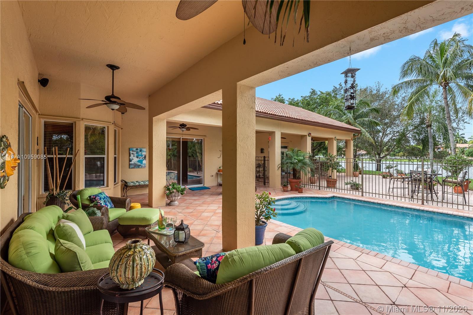 This is one of THE MOST BEAUTIFUL cul de sac lots in all of Davie! Surrounded by water & a park like setting, this outdoor oasis offers stunning peaceful views, large sparkling pool, outdoor kitchen & builder's acre private lot. Step inside to professionally decorated home with over $280,000 in upgrades & features. Huge beautiful kitchen with wood cabinetry, granite & built in fridge. 20x20 porcelain tiles, wet bar, textured ceilings, built-ins & more. Master retreat and upgraded master bath. 5th room is an office with custom cabinetry. HUGE addition complete with recreation & entertaining areas. Interior laundry room AND a mud room off garage. Home Gym. Carlton Ranches is a small boutique gated community with access to biking/walking trails, great schools & highways. This is a HOME RUN!