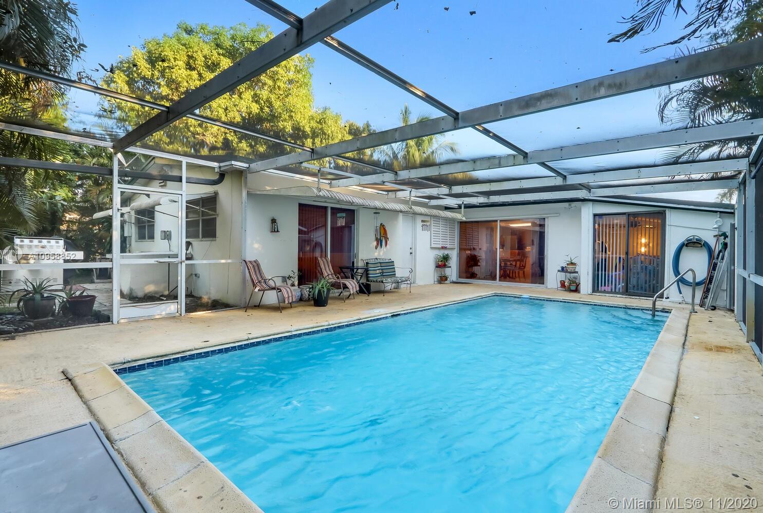 Traditional Florida Pool Home with a charming entryway porch in Hollywood. This 3BD/2BA home has a great layout with a bonus room, currently used as a den, that can easily be converted to a 4th bedroom. The terrazzo floors have been fully restored throughout the home. The large laundry room off the bonus room has plenty of space for an extra fridge and additional storage. The large backyard features a screened pool and patio area to relax and entertain. The beautiful front and back garden feature mature plants and fruit trees including mango and sour orange. There are two large sheds in the backyard for all of your outdoor storage needs. This is a great West Hollywood neighborhood with no HOA, close to community schools, and convenient to shopping centers, restaurants and highways.