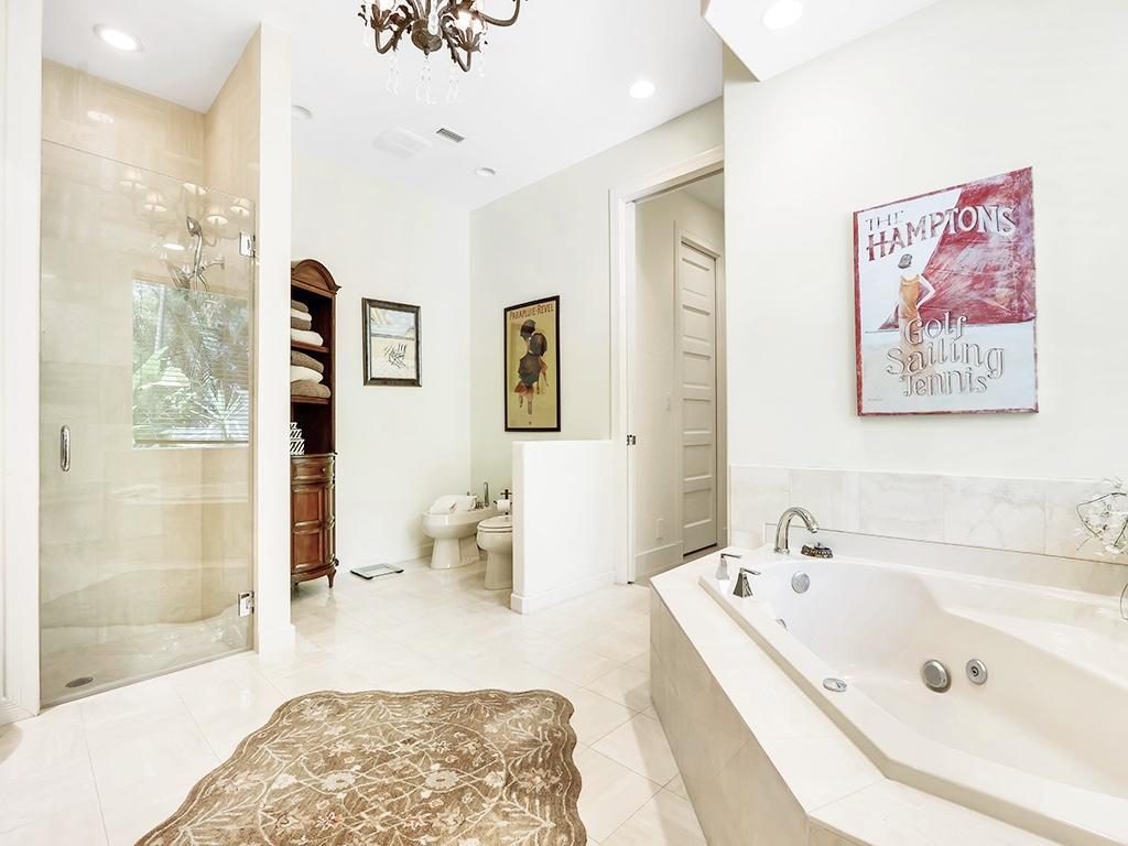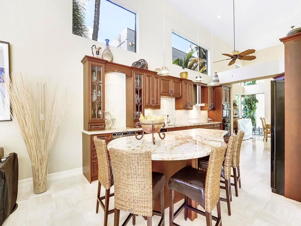 Unique, Expansive Courtyard Home, with Park Like BackYard. The Perfect Setting for Today's ''Play-At-Home Lifestyle''. Exceptional 4 bedroom, 4 bath courtyard home with a private park like pet friendly backyard. Perfect for a putting green or kid's slide. Enter into a courtyard that is truly unique, spacious, tropical, and perfect for entertaining or volleyball in the pool. The main house has 3 bedrooms with a 4th bedroom and bath in the guest house. The welcoming interior has an open floor plan, high ceilings, marble floors in main living areas. Updated kitchen with solid raised panel cabinetry, granite counters, Jenn-Air appliances and an expansive dining island. Clean and contemporary with high-end finishes. Updated bathrooms, bedrooms feature new flooring 2020.