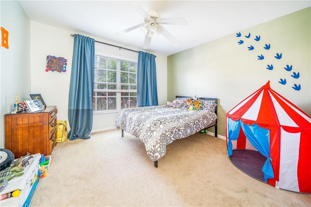 Stunning home in the very desirable Symphony Bay gated community. Fenced in yard, brick paver patio & scenic pergola. Open floorplan with vaulted ceiling, remodeled kitchen w/ stainless steel appliances & granite countertop, separate laundry room, sitting area in the master, his & her master bath vanities, a roman tub & separate shower. Community features a neighborhood pool, basketball, tennis & pickleball courts, children’s play area, a beautiful clubhouse & fitness room, just steps away from this property. A+ schools. No application for HOA required. Most furniture is negoatiable & lawncare items, as well. Rheem AC 05/2010, water heater 2008 & roof is original. Only carpeting in one guest bedroom. Room for a pool. Will not last!!