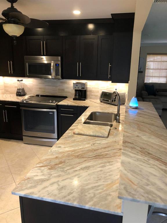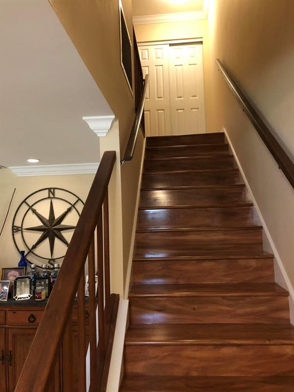 Spacious townhome with two large en suite bedrooms on second floor. Both have walk in Closets. The master bedroom walk-in is 12' by 6'. Remodeled 2015.There is 20'' porcelain tile on the diagonal on the first floor and laminate on the second. No popcorn ceilings. Full size LG washer and dryer. Stainless steel appliances. Quartz counter top. Kitchen open to living, dining and family room. Pantry has pull out drawers. Crown molding. New A/C 7/2018.Only 12 homes. Three buildings of four homes with a pool in the middle. It's like being on vacation all year. Half mile to Mizner Park and Royal Palm Plaza. 1-1/2 miles to the beach. This is a corner home with plenty of green space out doors. Condo fees include: water, building insurance, basic cable (Comcast)