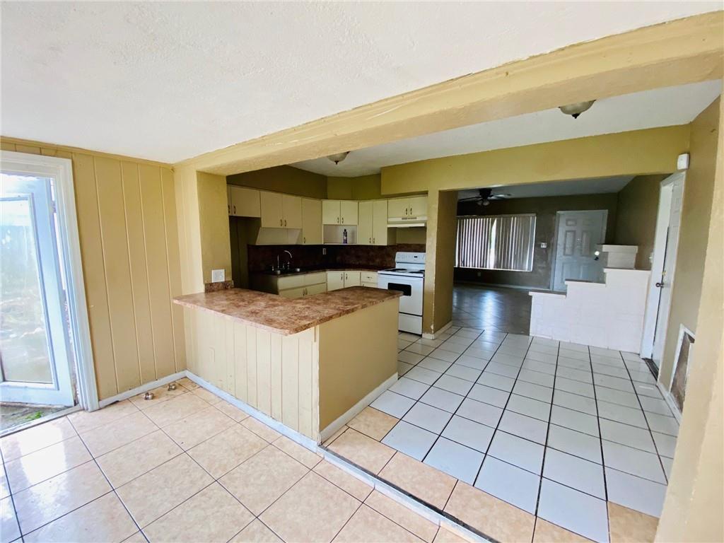 Perfect for first time buyers or rental property. Needs some TLC. Charming split-level 3 bed/2 bath home with decorative fireplace in living room. Tile throughout, no carpets - perfect for pets. Bedrooms and bathrooms located on upper split level. Hardwood floors throughout upper level. Open concept kitchen with eat-in area and French doors leading to spacious fenced backyard. Utility room under carport with washer/dryer hookup. Newer AC and water heater. Most windows are hurricane impact. Circular driveway with 1 carport. Close to I-95 and State Road 7, stores and restaurants.