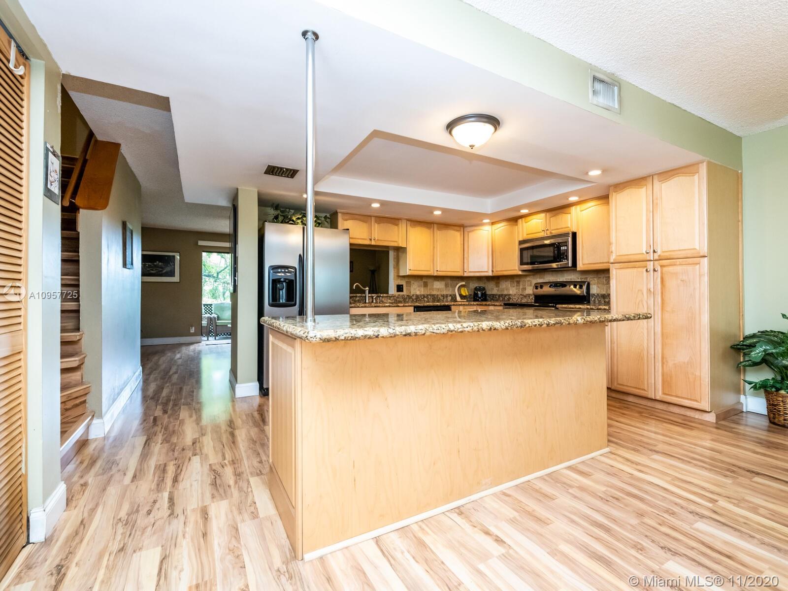 Absolutely Beautiful 3 bedroom, 2 bath townhome located in Welleby Springs. Well kept open concept kitchen with oak cabinets and granite counter tops, large island, stainless steal appliances, hurricane impact windows & shutters for back sliders, laminate floors downstairs, tile & carpet upstairs. Master bedroom has walk-in-closet and all closets have organization shelving, a Brand New Roof will be installed by association shortly, water heater 2013, AC 2008. A must see!