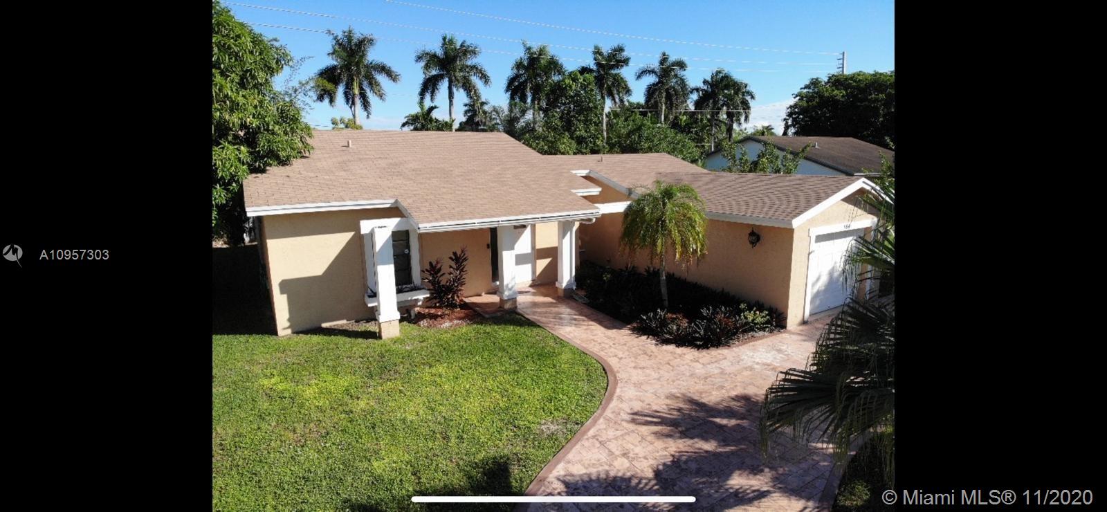 Remarkable 3 Bedroom 2 Bathroom home in Weston. A+ rated schools, home has new roof, new driveway, and updated kitchen, with an attached garage, Mango and Banana trees in yard, Hurricane shutters included, sliding doors have sliding shutters. HOA is 47.00 per month paid yearly at 564.00, Clubhouse and pools are Bonaventure.