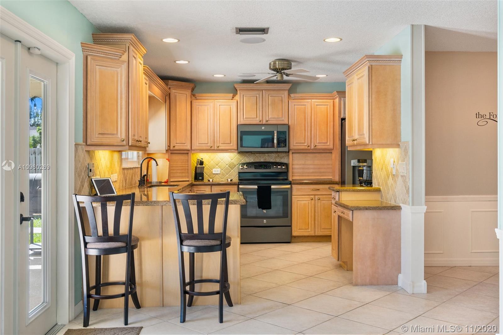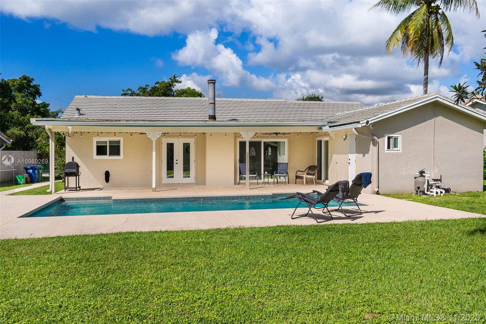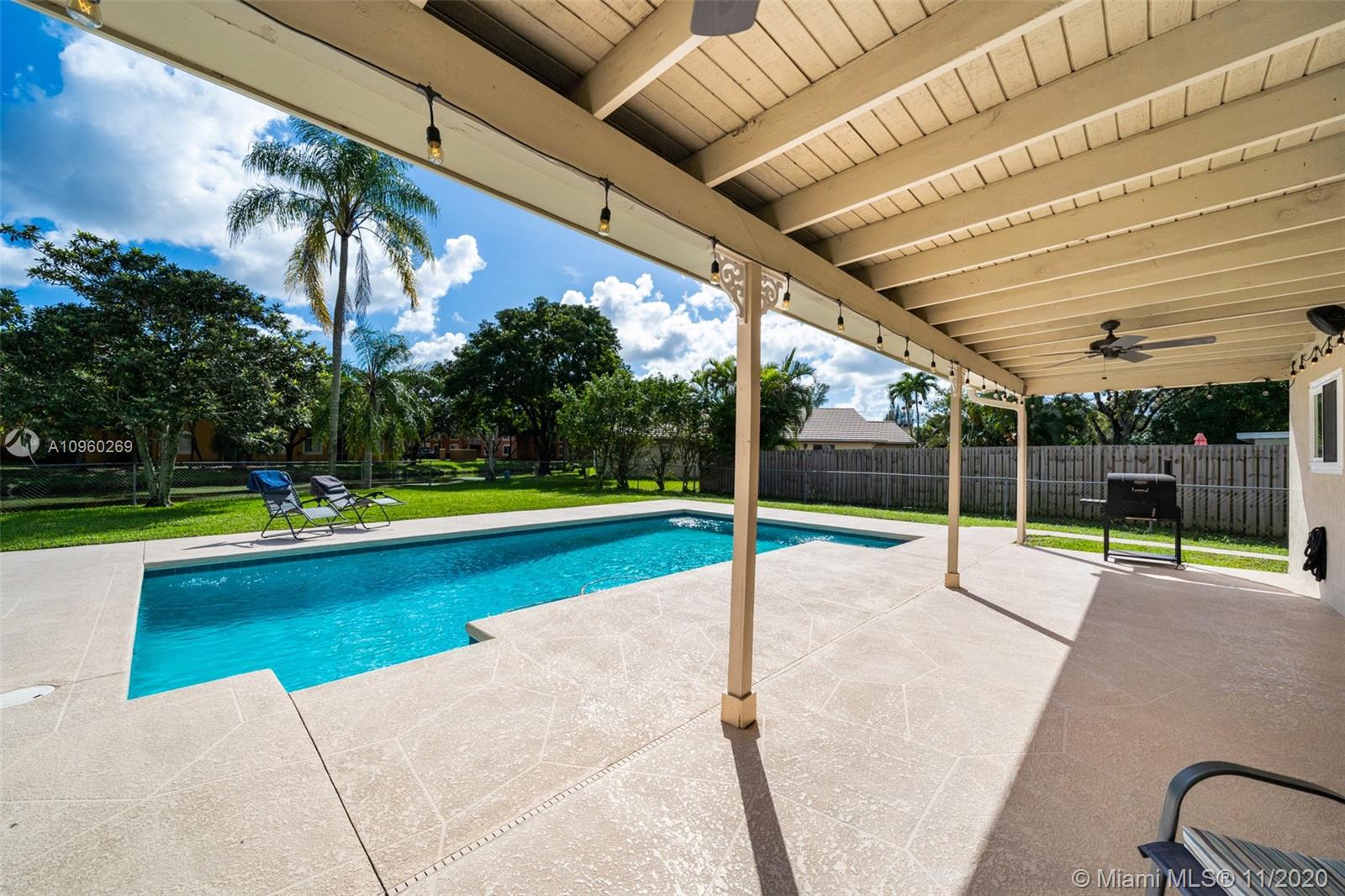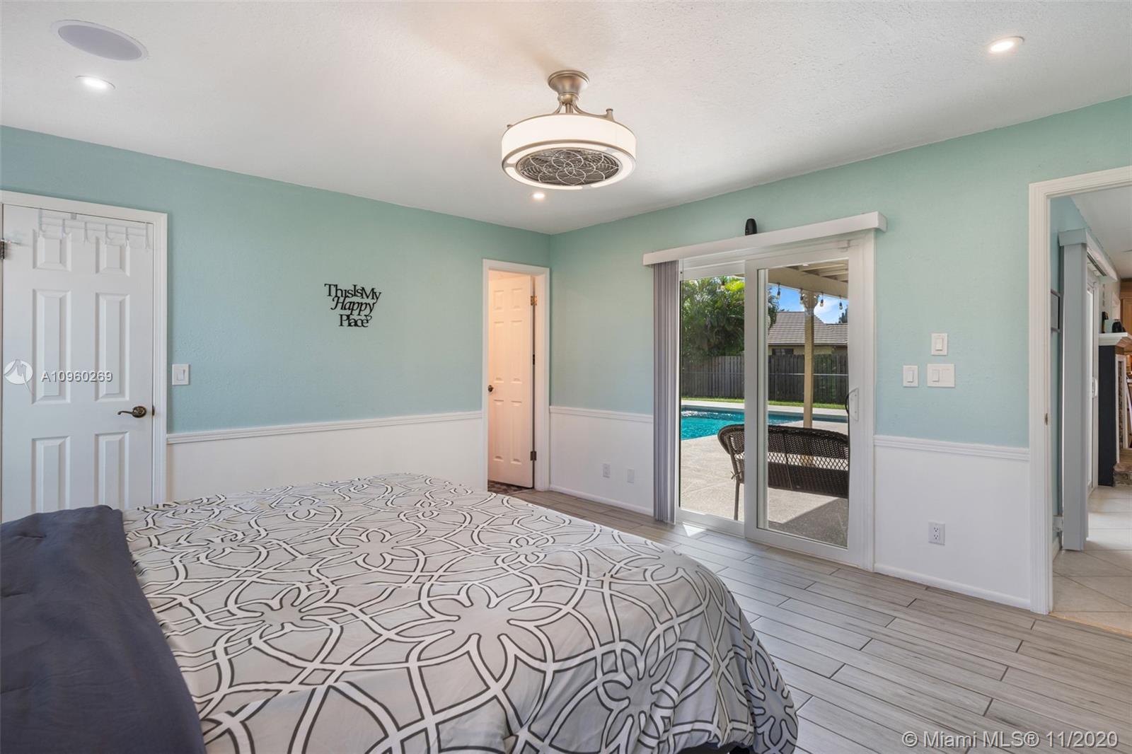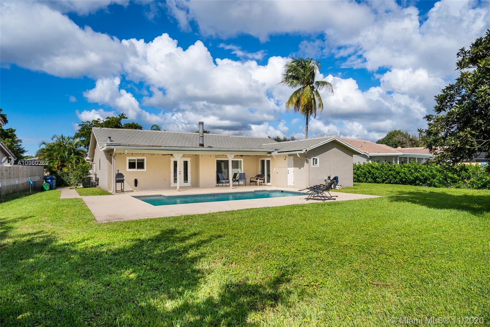 Elegant and renovated 3 beds 2 bath home in the neighborhood of Coral Springs. Perfect for a growing family, this home is in a great school district with elementary, middle, and high schools within walking distance. The home features a number of upgrades including a full home sound system with 5 dedicated zones, recently renovated bathrooms, brand new porcelain flooring in all bedrooms, ceiling fans, recess lighting throughout common areas and in the master bedroom. Fall in love with the covered patio overlooking your newly refurbished pool, updated exterior electrical power service panel, hurricane impact windows, and doors throughout the entire home, a double car garage with a hurricane grade double car garage door, new garage door motor, and epoxy flooring.