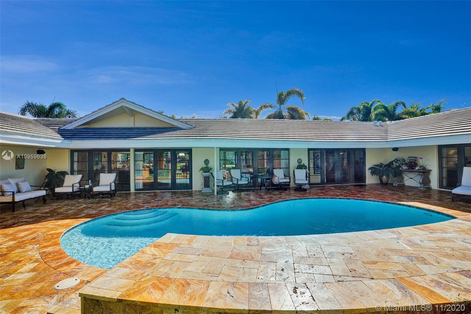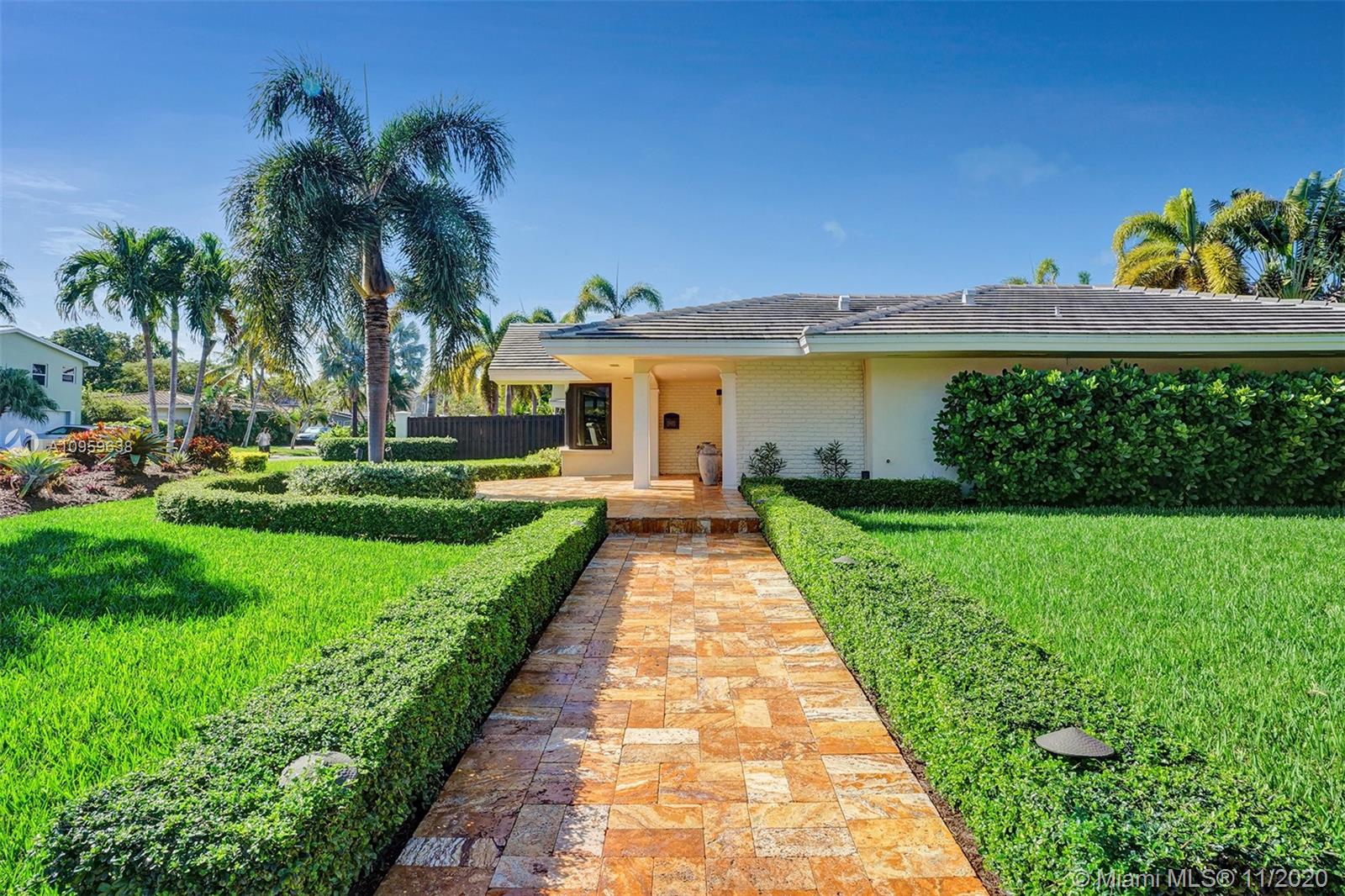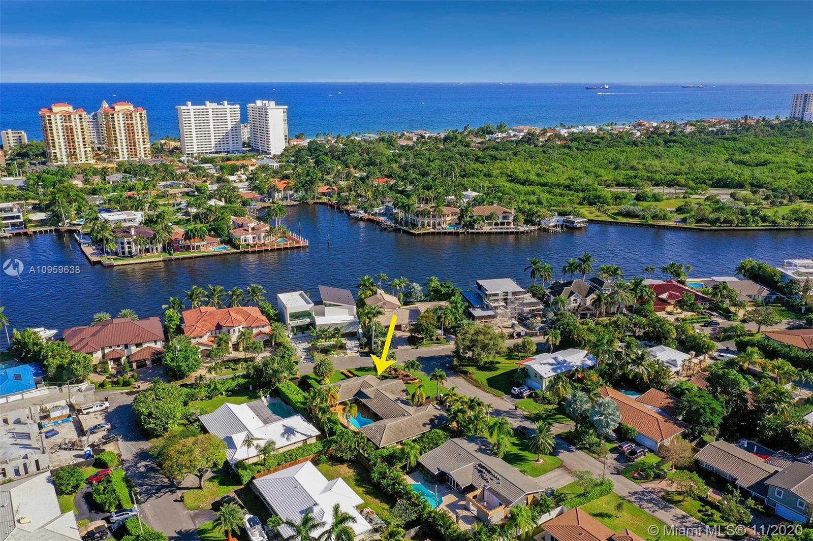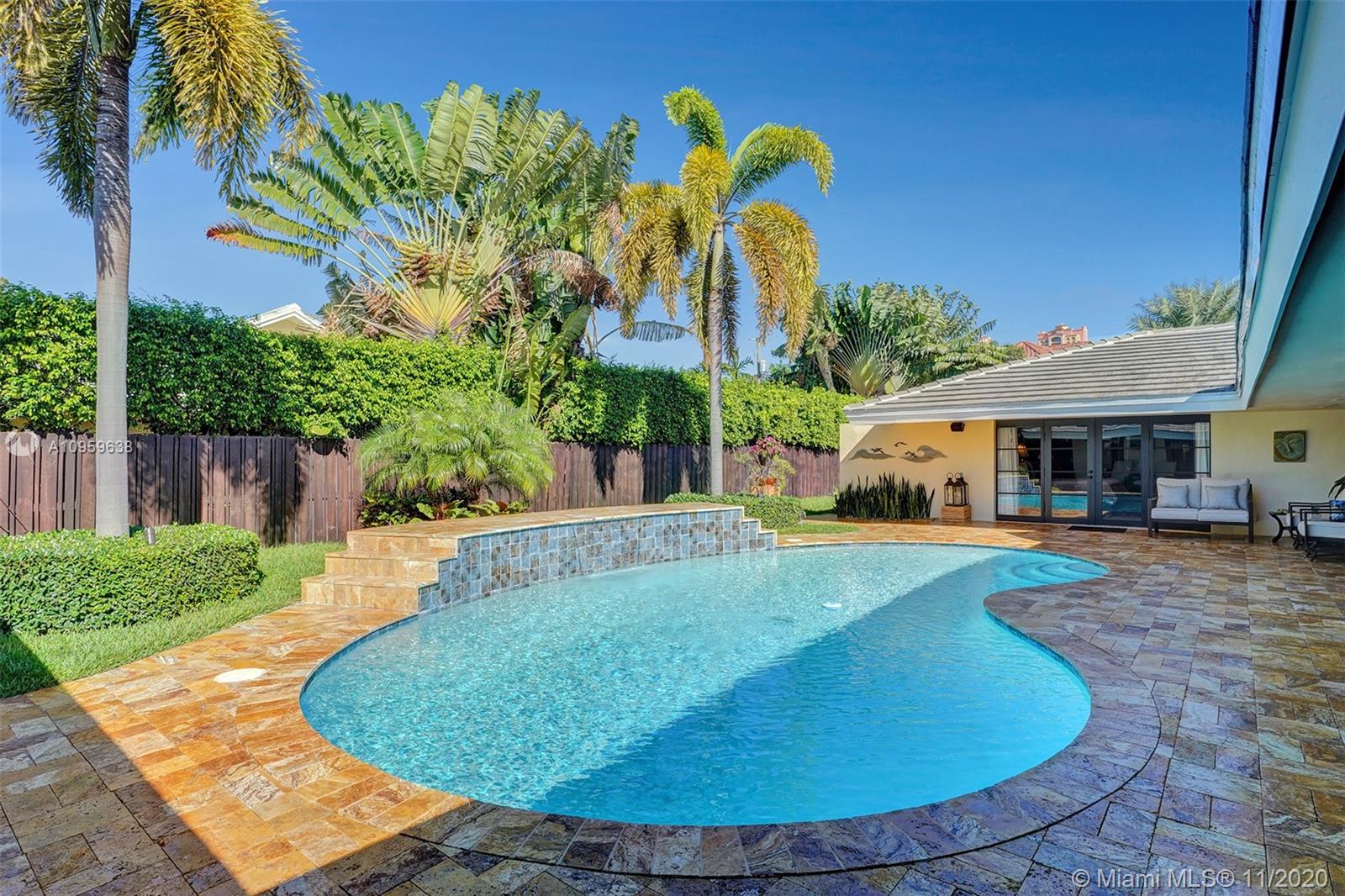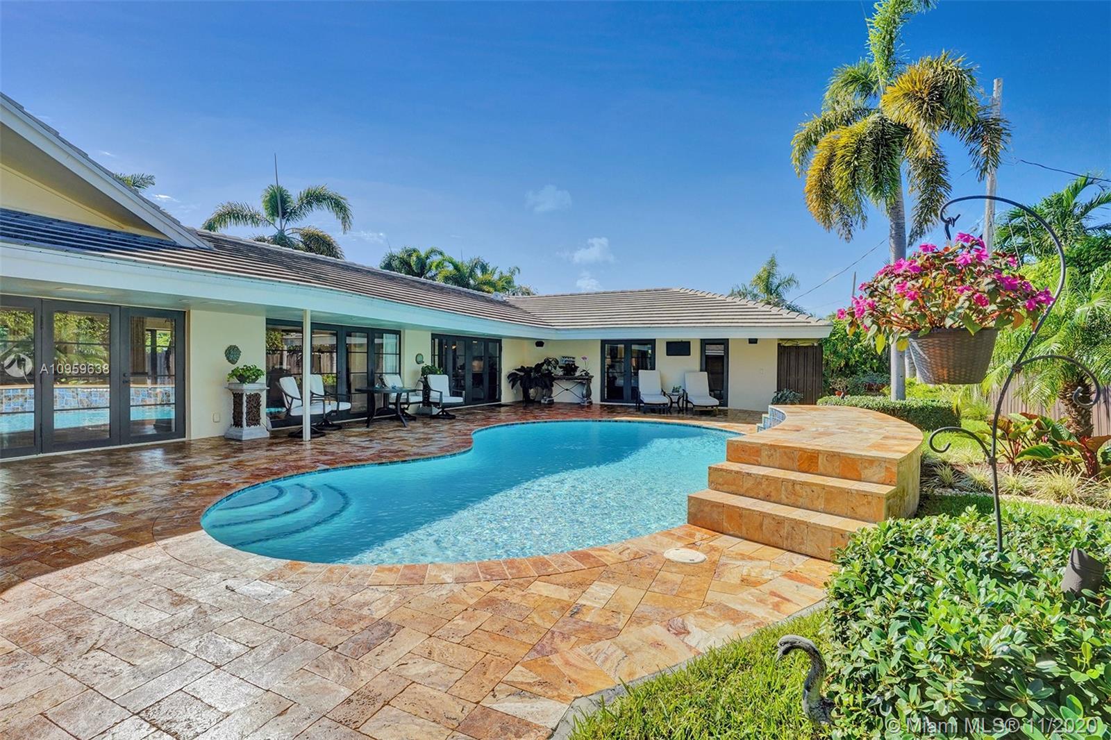 Welcome to your new home! This spacious and inviting 3 bedroom, 3 bathroom renovated home sits on a large, corner lot in a secluded section of Coral Ridge, directly across from multi-million dollar homes and the Intracoastal Waterway. Made for entertaining, with spacious living room with vaulted ceilings and exposed wood beams, formal dining room, and a chef's kitchen all surrounded by French doors that fill the house with natural light and bring the outdoors in. Split en-suite bedrooms offer total privacy. Gather for movie night in the family room appointed with cathedral ceilings and wood beams or sit outside and enjoy the manicured grounds, renovated pool with waterfall, wrap around marble paved patio with koi pond and several private areas to sit in, all this plus, so close to beach!!!