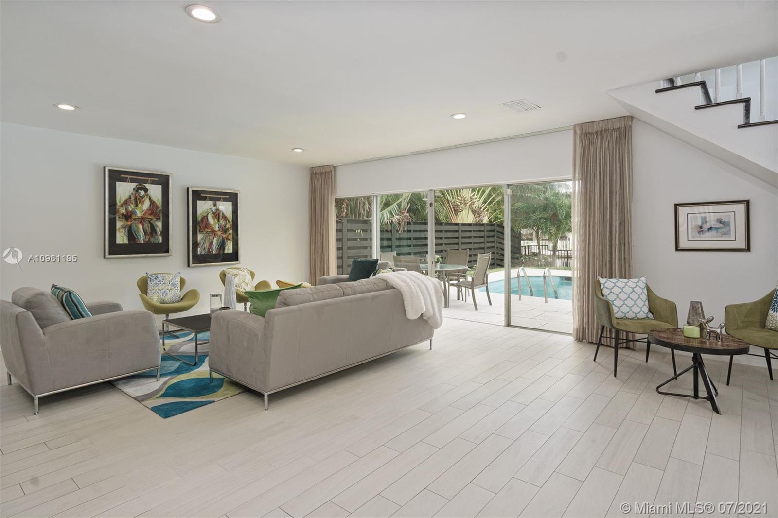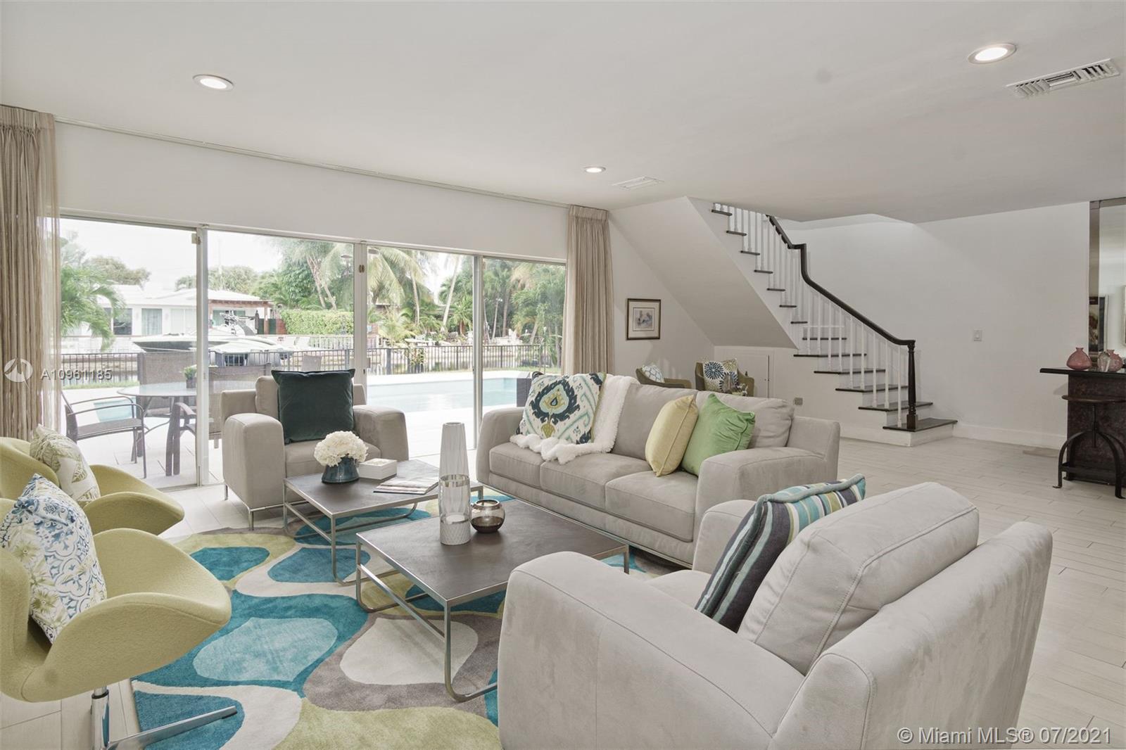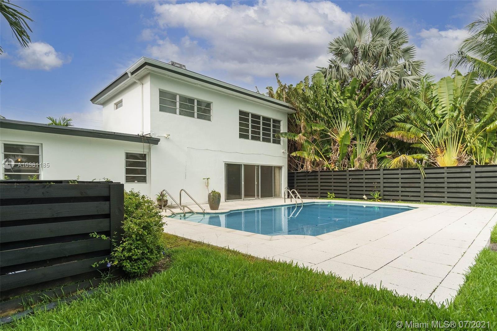 Waterfront home located in Biscayne Point, a gated community, close to the beach, schools, shops, cafes and all the conveniences you could ever need. 2 story home with beautiful pool and private backyard. 3 bedrooms and 3 full baths plus a 1/1 attached guest suite or office/bedroom/gym off the kitchen on the first floor. The second floor is all master suite with 2 big closets, updated bathroom and views of the pool and canal. Super open floor plan, eat-in updated kitchen. Great natural light and beautiful view of the pool/canal from the main living spaces. Covered parking, storage room, some impact windows. Addition in the 1960's was done by Architect Norman Giller.