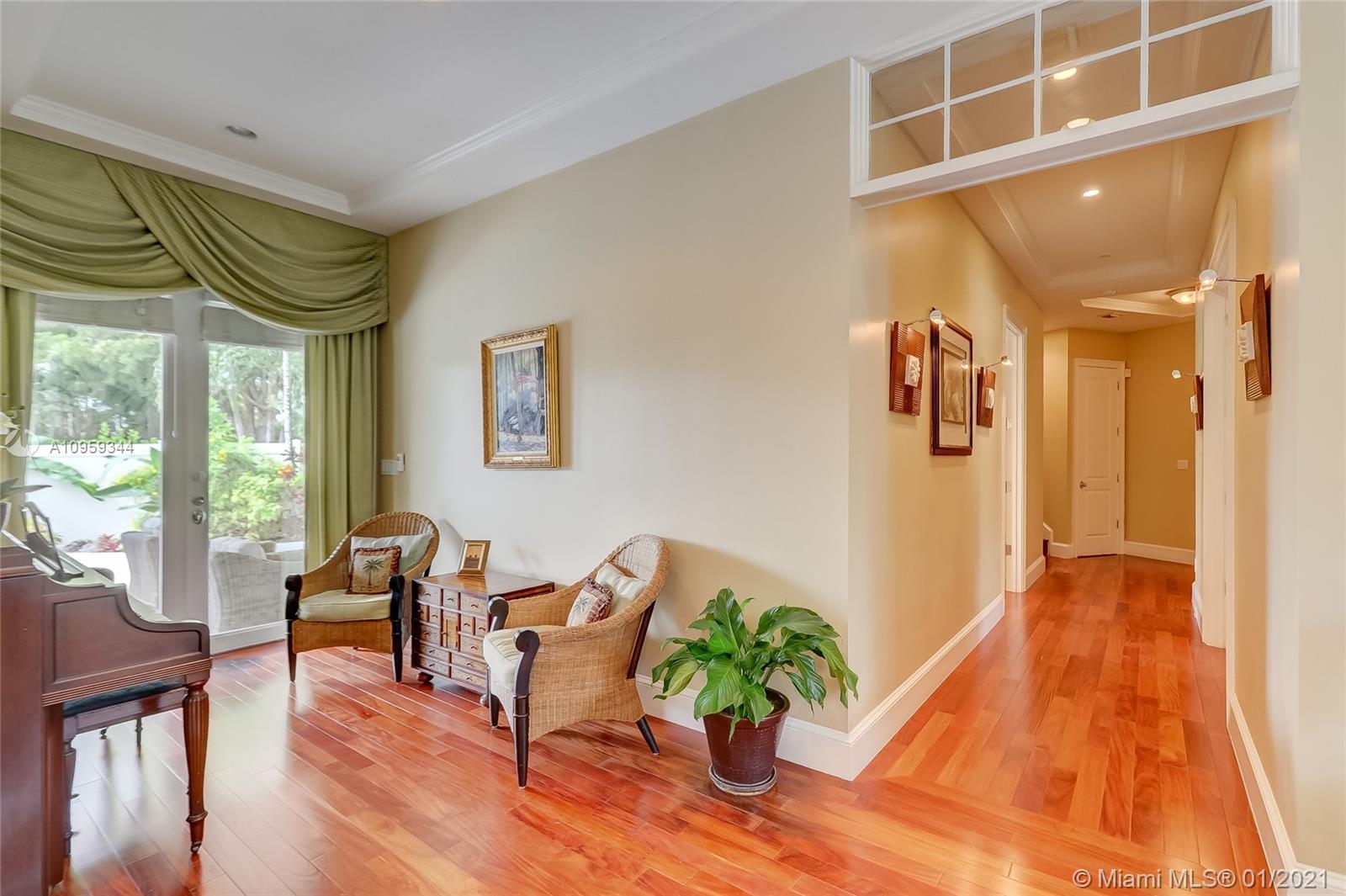 Highly desirable Sunrise Intracoastal gated community, top rated Bayview School District. Walk to beach, Galleria Mall, entertainment & restaurants. This versatile large residence sits on a corner lot, built in 2007, impact glass, great for entertaining w/huge covered marble terrace with summer kitchen: wet bar, grill, storage, fridge. Generator. 1st level: Tall ceiling foyer entry, large open kitchen with walk in pantry, family room, 2 half baths, 1 bedroom with ensuite bath, room with 3 individual office stations (could be 5th Bedroom), game room with pool table, private formal dining room, piano room. 2nd level: Master Suite w/oversize sitting area/living room (could be split into 6th bedroom), media room/entertainment complete with full bar, icemaker, dishwasher and refrigerator.
