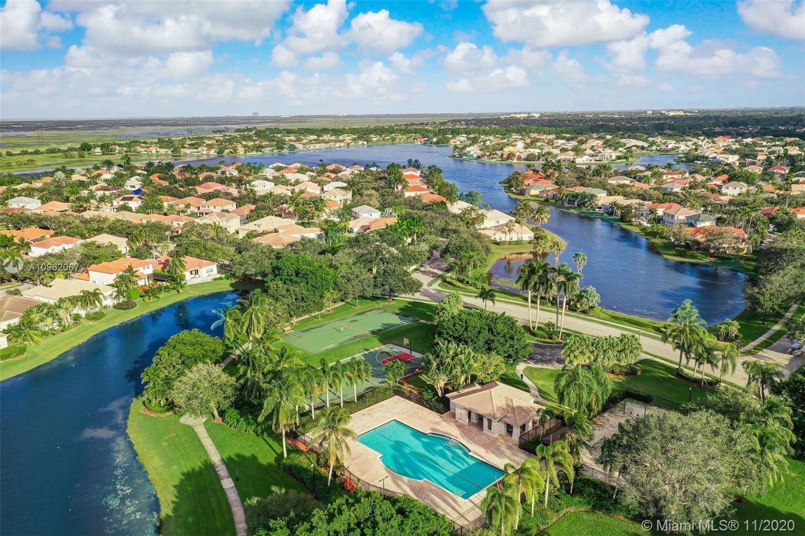 Welcome home! Amazing open floor plan, spacious living area and beautiful kitchen overlooking pool area. 4 bedrooms and 2 and a 1/2 bathrooms, front porch and covered patio. Pool area has lush landscaping with palm trees perfect for entertain. Located in desirable gated community in Weston, The Meadows, close to Gator Run elementary school. Falcon Cove Middle School, Cypress Bay High School. Gard gated community has pool and multi sports court. Close to major highways and airports.