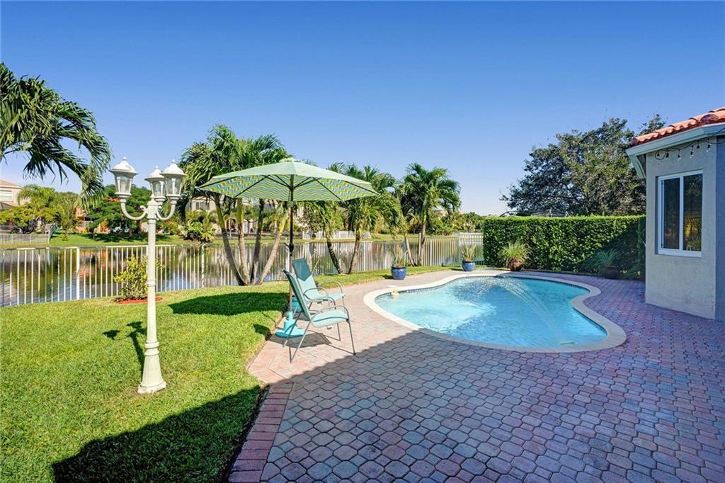 Indulge in that holiday lifestyle with this immaculate waterfront property. From the sparkling pool with a water fountain feature to the sweeping lake views and central location, this is a home that will impress. There is a large backyard patio ready for relaxing with friends and family while taking in lake views. Owner’s suite has 2 walk-in closets and an ensuite that was updated in 2016. Other updates include impact windows, doors and exterior paint in 2018, AC in 2016. This stunning residence is nestled in the sought-after Riviera Isles community that is peaceful and private yet close to shopping and restaurants. Residents of this prized guard gated community enjoy access to a clubhouse, tennis courts, fitness center, pool and spa, plus scenic trails ready for you to explore.