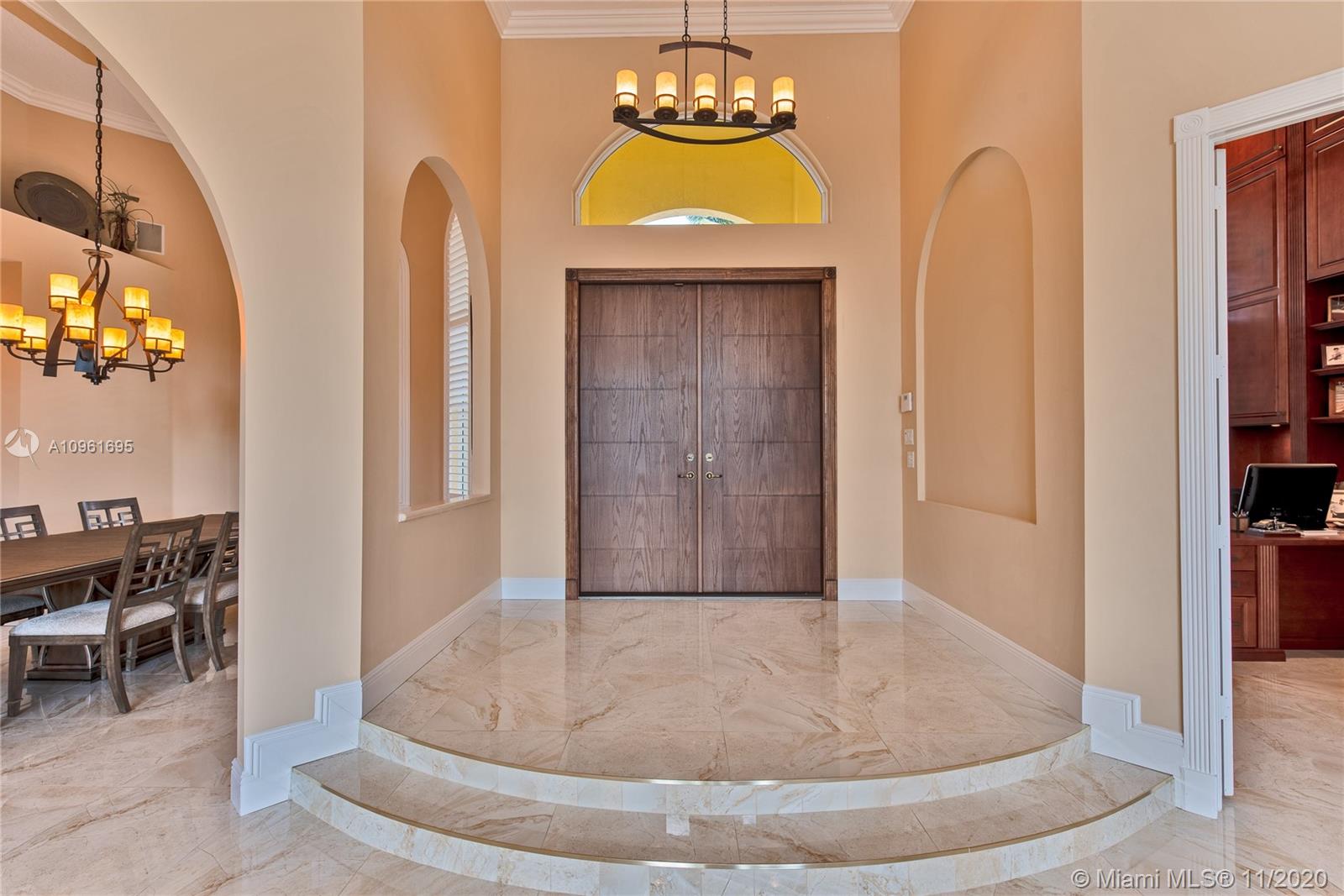 This splendid home located on the premier lake front lot in the charming and quaint community of West Ridge. This one story, 5 bedroom, 5 bathroom sits on a builders acre. This home offers all new impact windows and doors, crown molding, and double height ceilings throughout. The family room boasts a one of a kind build out and the living room holds a wood burning fireplace that overlooks the lush resort style yard.