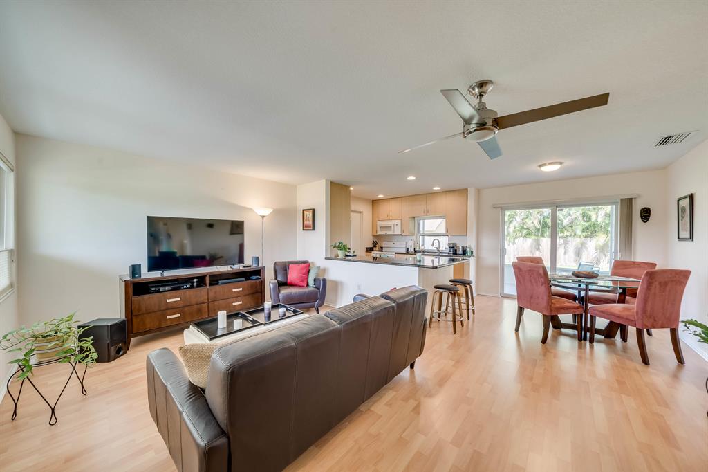 Look no further! This one story home on a large private yard with NO HOA is what most buyers are looking for! Great starter home with features like Hurricane Impact windows and doors, storm rated garage door, new washer and dryer, updated kitchen with custom made ceiling height cabinets, lazy Susan and spice rack. Both bedrooms have new California closets, updated bathroom and wood floors. A/C is 5 years old, roof is 2012. Enjoy your private outdoor living in the screened-in covered patio, from yard has a large circular driveway. Room for a nice size pool!!! Great schools and amazing location. Close to everything: shopping, dining, parks and more. Home shows very well, hurry! Contact agents for showing.