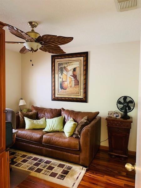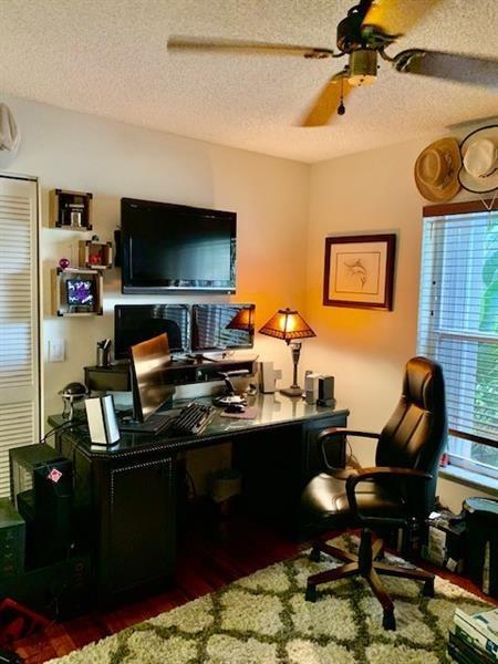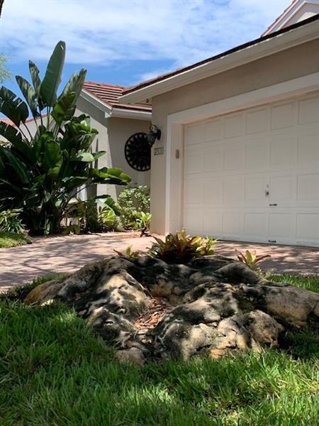 LAKEFRONT 3/2 home on tree-lined, shady street. Mature lush landscaping. Many coconut palms overlooking an east facing lake view and private backyard with brick paver patio. Tiled throughout except rich Brazilian Koa wood floors in each bedroom. Each closet is custom designed. Stainless steel Samsung kitchen appliances. 2 car garage is air conditioned, insulated and has 2 fans. Small dogs or cat will love the custom made doggie door. Accordion shutters. 50 amp panel connection ready to connect to a generator for hurricane preparedness. Oakridge amenities offer Tennis Courts, Basketball Court, Vita course, Boat storage and a brand new deluxe Children's Playground.