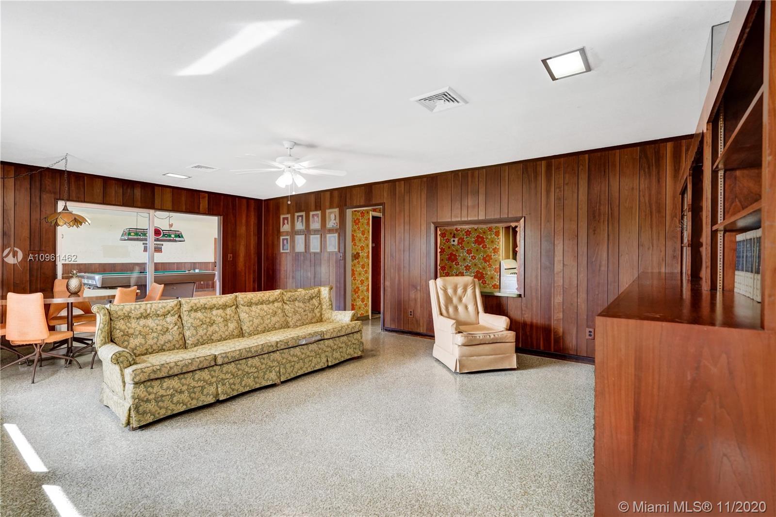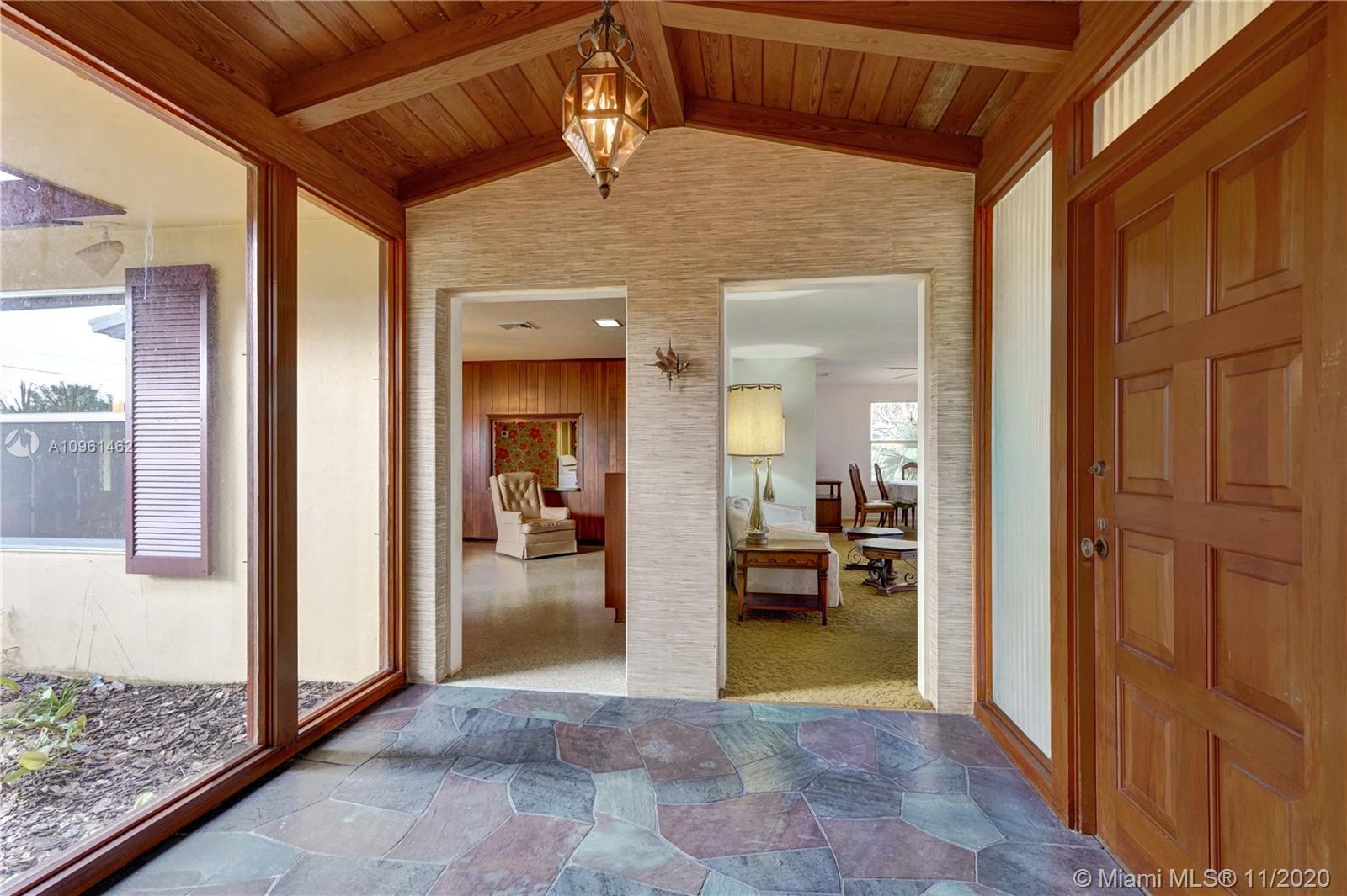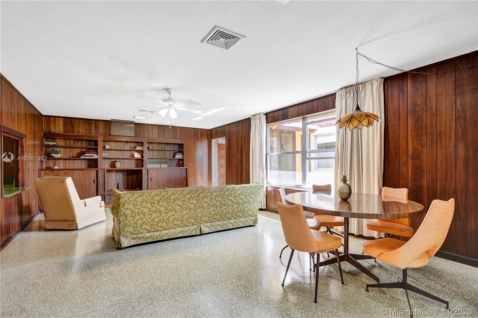 Mid-Century original 1966 Family estate home in East Hollywood Lakes. Designed by Robert Hansen, SOFL architect who was known for his Tropical Modern design. Features in this 3 lot 4 bedroom/3 bath home include a foyer entrance with wood cathedral ceiling and floor to ceiling windows overlooking a garden, a formal living room, dining room with hand painted wall mural, 30x40 family room with dining area, kitchen with Mutschler cabinets, gas stove and counter seating with pass through to family room. Also a playroom with pool table overlooking the backyard, and 3 car garage with built-in cabinets and work area with rear alley entrance.