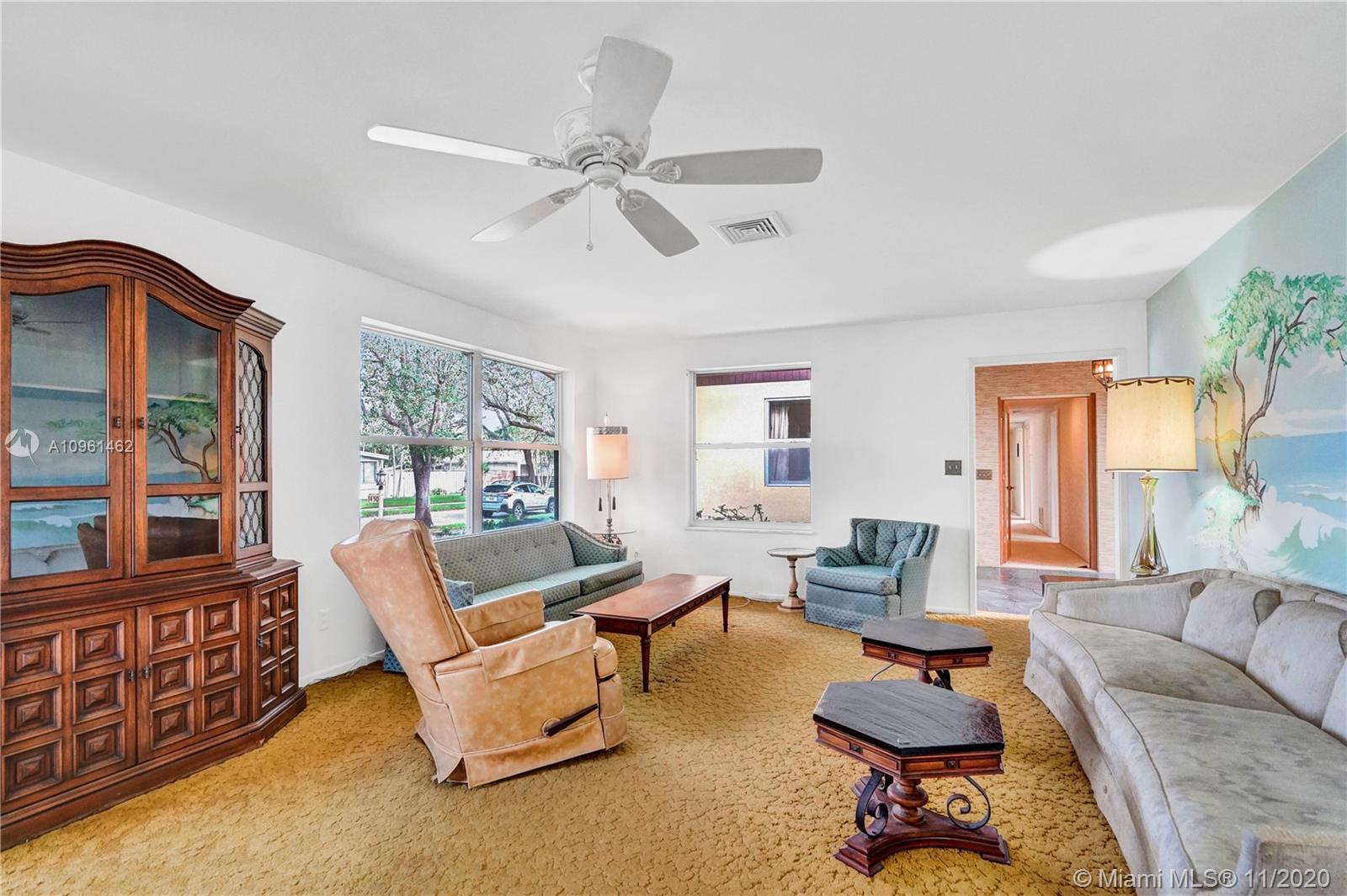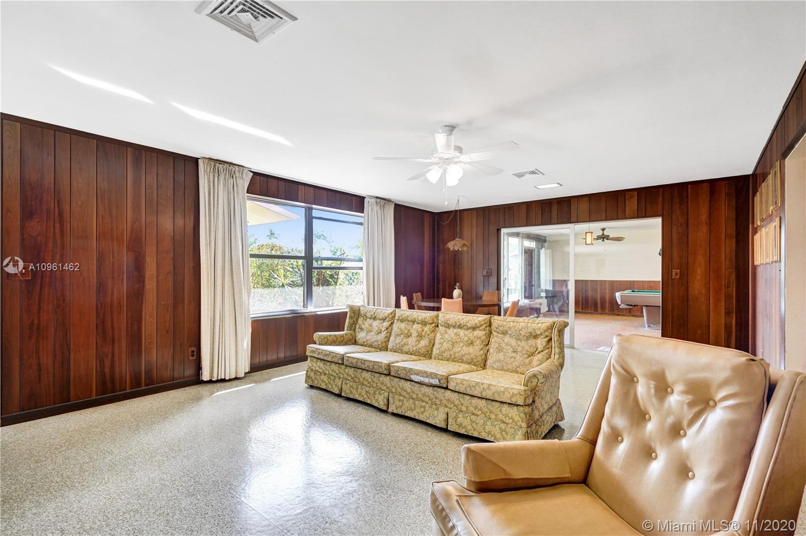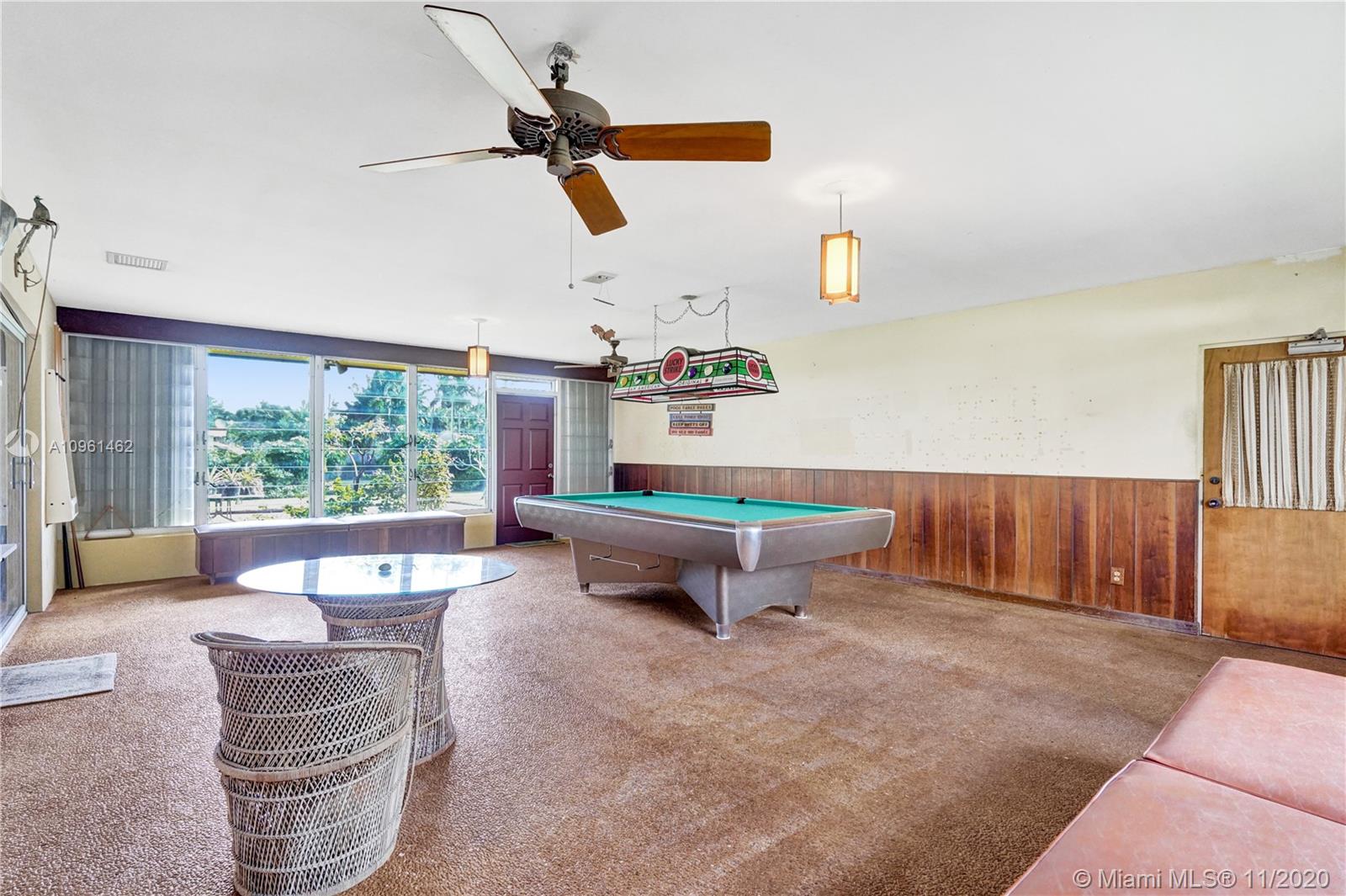Mid-Century original 1966 Family estate home in East Hollywood Lakes. Designed by Robert Hansen, SOFL architect who was known for his Tropical Modern design. Features in this 3 lot 4 bedroom/3 bath home include a foyer entrance with wood cathedral ceiling and floor to ceiling windows overlooking a garden, a formal living room, dining room with hand painted wall mural, 30x40 family room with dining area, kitchen with Mutschler cabinets, gas stove and counter seating with pass through to family room. Also a playroom with pool table overlooking the backyard, and 3 car garage with built-in cabinets and work area with rear alley entrance.