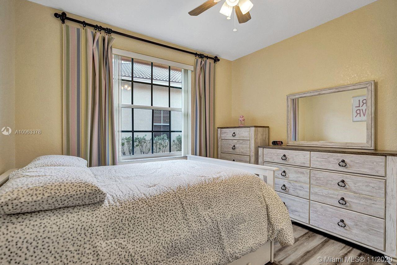 Spectacular family home in Weston desirable Savanna resort style community. One story 4 bedrooms, 2.5 baths, open concept living area with high ceilings, crown molding. Front porch and nice curb appeal. Newer kitchen is spacious with granite countertops, a separate breakfast area, built-in bar, a desk and plenty of cabinet space. Large kitchen island provides extra eating space. There is an oversize covered and screened in back patio/porch for extra outdoor living perfect for entertaining. Master bedroom has also high ceilings with organized closet space. Separate laundry area leads to two car garage with plenty of storage. Tile floor on living area and laminate wood floor on bedrooms. The two-bathroom showers were recently remodeled. Close to A+ schools.