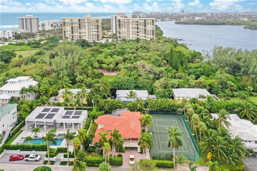 Grand seaside home with private tennis court on a 20,625 sq ft lot. Remodel, rebuild or add personal updates.Ideal location on Boca Raton's barrier island. Custom built for entertaining; light and airy with 20’ high ceilings.Luxurious marble floors on first floor.Second floor with over 1000 sq ft master bedroom, gym, spacious bath and two walk-in closets.Two large terraces over looking tennis court and pool area.Two large bedrooms on main level with ensuite baths and one detached bedroom pool-side suite.Large screened in pool deck with expansive sitting area.Custom bar with built-in barbecue.Easy to maintain full size clay tennis court.Property is steps away from private, deeded beach access.Located on a private, dead-end street.Close to parks, public golf and Gumbo Limbo Nature Center.