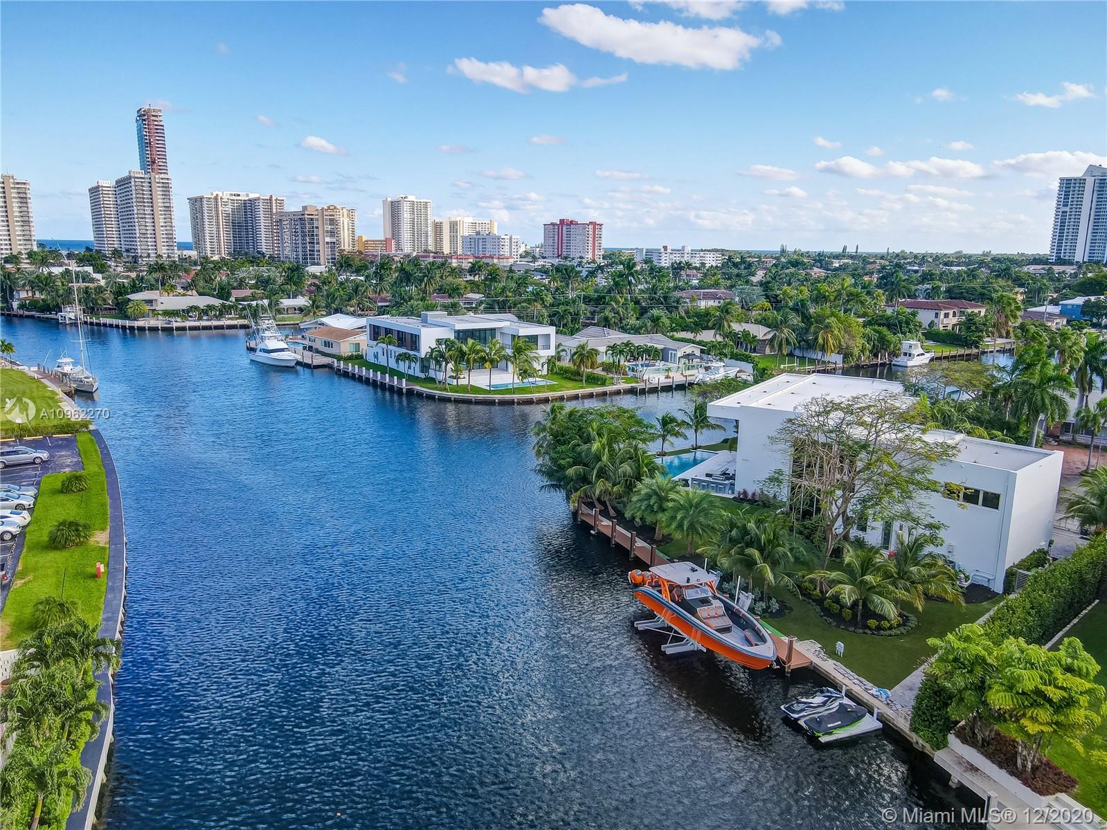 Polished modern two-story residence located in the gated community of Golden Isles. This residence sits on a secluded point lot with a beautiful infinity edge pool overlooking the intracoastal. 270 feet of water frontage with space for yachts on both sides. Open floor plan with natural lighting encompasses this spacious property with immaculate views throughout the interior. Floor to ceiling impact windows, marble floors, and a separate staffs quarter. Brand new custom gym and private gated driveway.