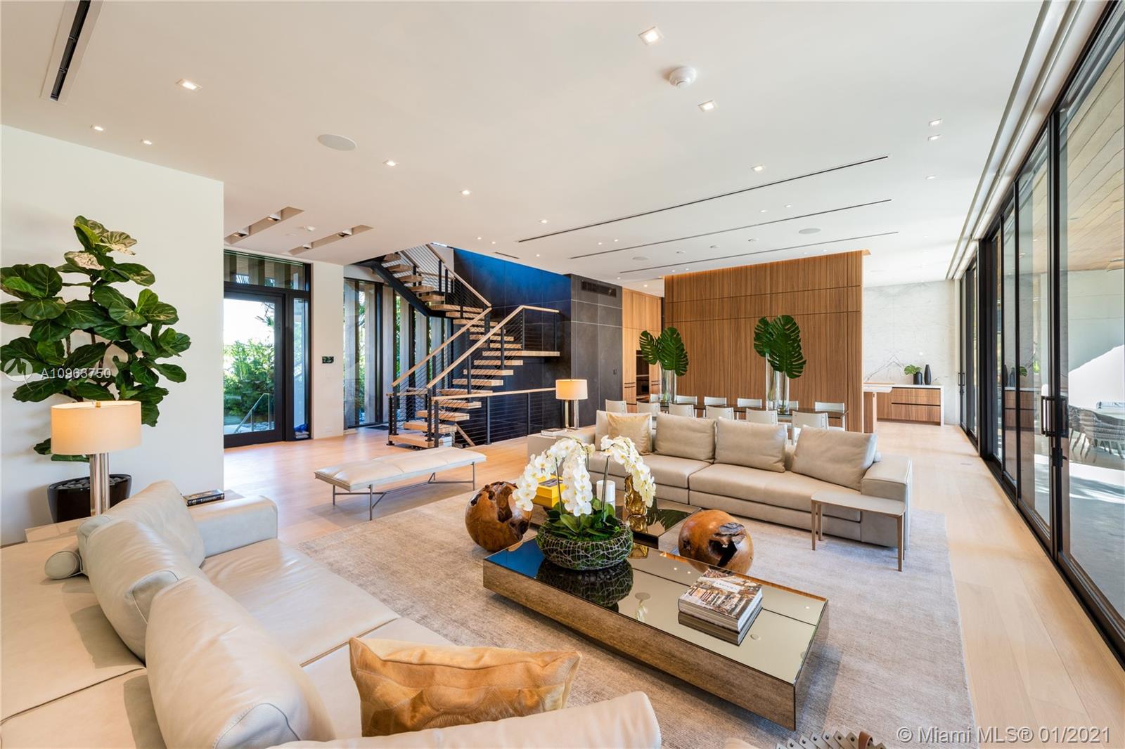 Extravagant brand-new mansion on gated Sunset Islands in Miami Beach with exceptional contemporary architecture by Kobi Karp, developed by Todd M. Glaser. Perfect for indoor-outdoor entertaining, this stunning home has the ideal southern exposure with 112 feet on the water and an extraordinary backyard with expansive covered areas, summer kitchen, and lawn area surrounding an 80-foot pool with a spa. Great open concept floor plan with soaring 12-FT ceilings, wood floors, chef’s kitchen by Italkraft, Crestron system, cove lighting, elevator, huge entertainment room with a wet bar. Five large bedrooms up, including a lavish master suite, a huge private deck, 2 mega-sized closets, & a dream bath. Staged by Artefacto. 3-car garage, 6-car carport, circular driveway.