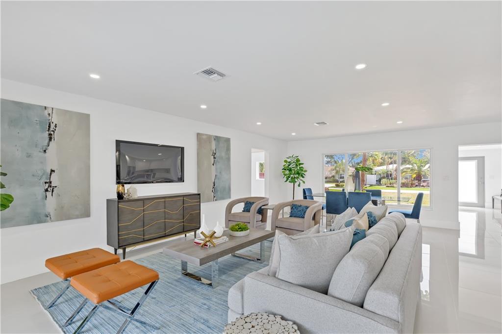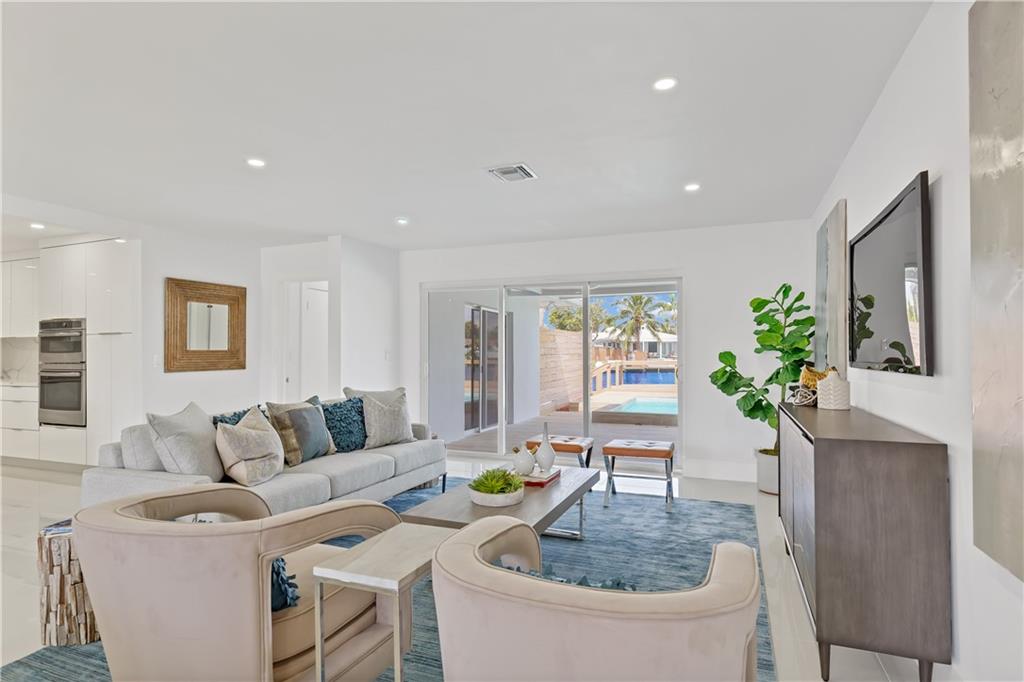 Do not miss this waterfront masterpiece just minutes by boat to the ocean! Be the envy of your friends and family as you show off the practically endless canal and poolside views just across the bridge from Wilton Manors. Boasting a brand-new metal roof, a grand kitchen with custom white cabinetry and high-end appliances, quartz countertops, impact windows and doors, ceramic tile throughout, 3 bedrooms, 2 fully renovated bathrooms, a laundry room and a massive family room in the front, your new luxury estate is completely rewired to today's standards. With a split bedroom floorplan and covered deck directly accessible from the master bedroom and living room, you and your guests will flow seamlessly from indoors to out, all the while retaining the privacy you long for.