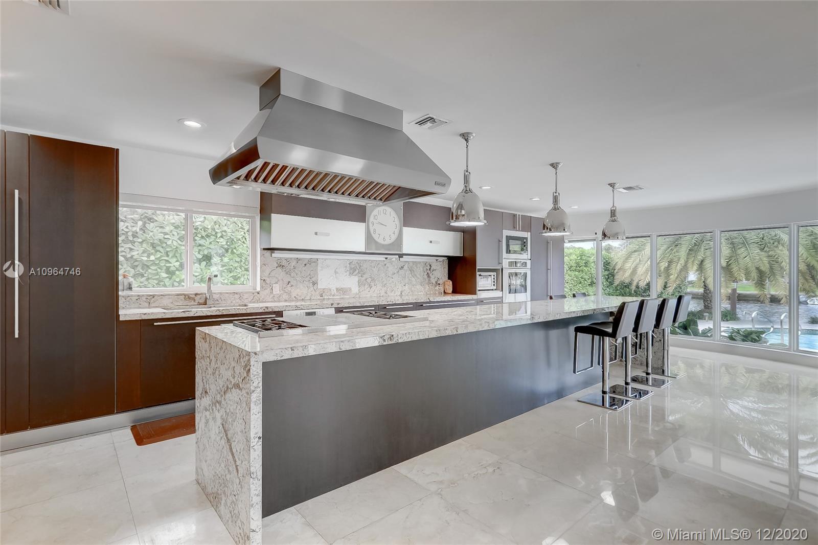 Completely renovated waterfront home in the Luxury Golden Isles community. Boater's Paradise: 85 ft of water frontage on the widest deep water canal in the neighborhood with no fixed bridges. This 2 story bright and spacious home has an amazing floor plan that consists of 6 bedrooms, 5.5 baths. Gorgeous staircase with glass railings leading up to your completely private master bedroom, which has a balcony overlooking the pool and views of the water. Features include vaulted ceilings, recessed lighting, pool, backyard pavers, and state of the art fully custom chef's Italian kitchen with extremely large cooking island and plenty of storage.