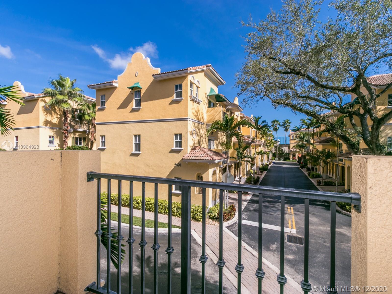 Elegant tri-level corner townhome in the upscale gated community of The Grove At River Oaks. This rarely available 2 bedroom, 2 and 1/2 bath home boasts a double garage and rear fenced patio. Each bedroom has it's own on-suite bath and balcony. Granite kitchen countertops with under counter lighting. Stainless steel appliances. Large master closet including a free standing safe. Wood floors in the main living areas and carpeted bedrooms. Impact glass windows and storm rated doors. Community pool. Conveniently located on Marina Mile near I-95 and the airport. Close to the beaches and downtown Fort Lauderdale