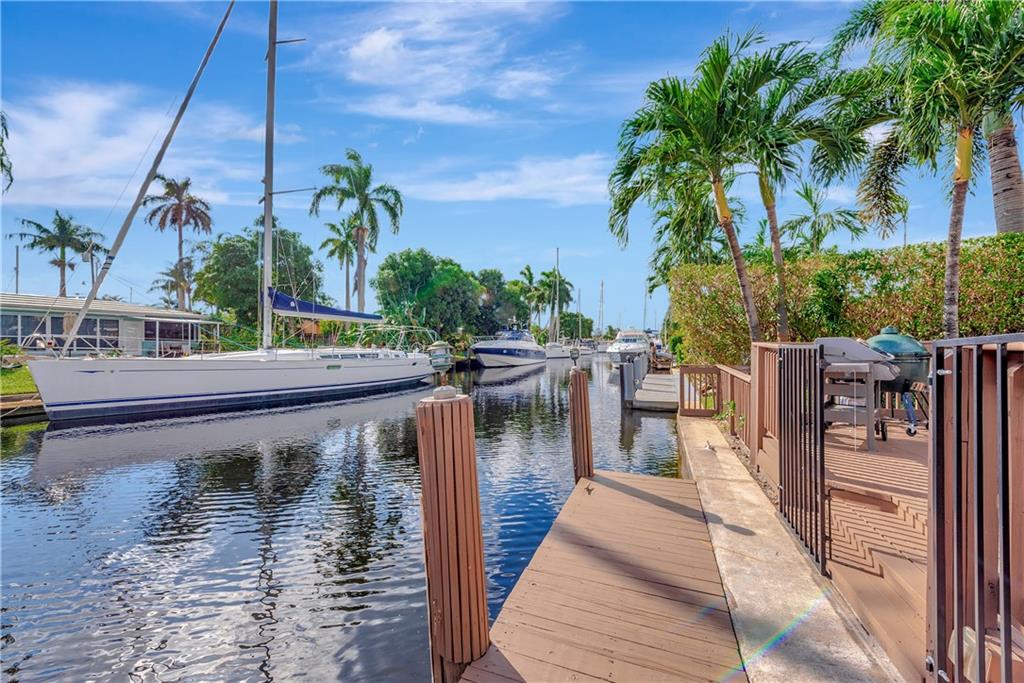 This turn key 3/2 home on 60 feet of water frontage (no fixed bridges) has been completely upgraded! Beautiful wood look porcelain tile throughout the entire home! Kitchen features quartz counters, soft close drawers/cabinets(w/pull outs), gas stove, & stainless steel appliances (including convection oven microwave). All impact windows/doors + accordion shutters! Electric also updated! Both ACs 2018! Home has tons of closets for storage, amazing natural light, & laundry is inside! Stepping into your backyard paradise enjoy the views from your wood deck & keep your boat on the lift! Large carport with additional storage closets! Smart home! Arguably one of the best locations in Ft Lauderdale. Minutes from beach, airport, highways, shopping, & dining!