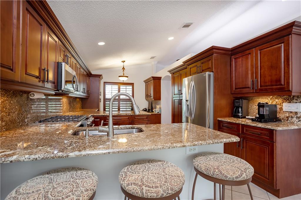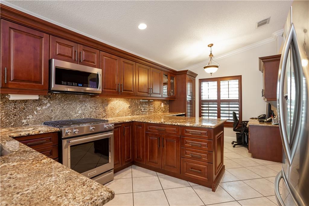 Immaculate 3 bedroom 2 bath home in the gated neighborhood of Maple Ridge. As soon as you walk in you will feel at home. Large open living space surrounded by Natural light through the all IMPACT/triple pane WINDOWS! Gourmet kitchen featuring oversized granite countertops, tons of hard wood cabinet space with pull outs, stainless steel appliances, and gas stove. Large living space plus formal dining. Primary bedroom features extra large walk in closet, updated bathroom with double sinks. Laundry room. 3rd bedroom is fully decked out as an office with a murphy bed perfect for guests. Extended screened in patio with retractable awning. 2017- 500 gal LP gas tank for standby generator and gas stove. HOA includes security, gate, and amenities! Easy access to I-95, I-75, 595 and the Turnpike,