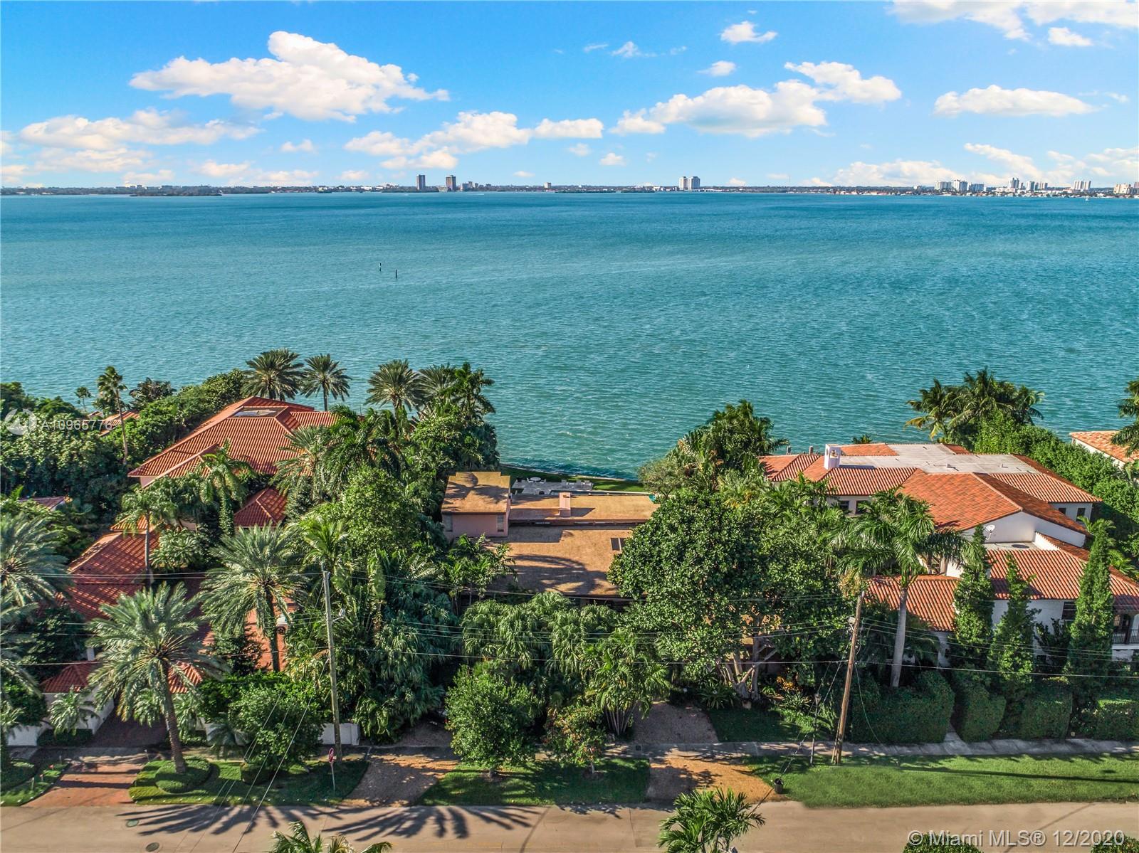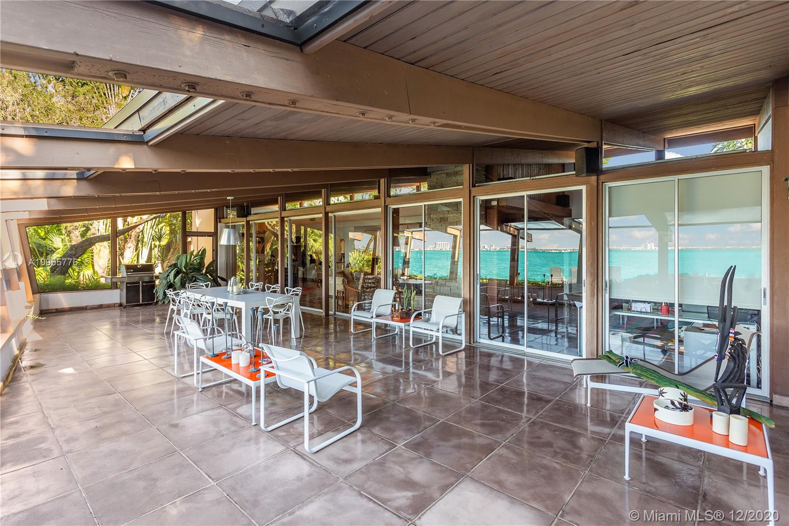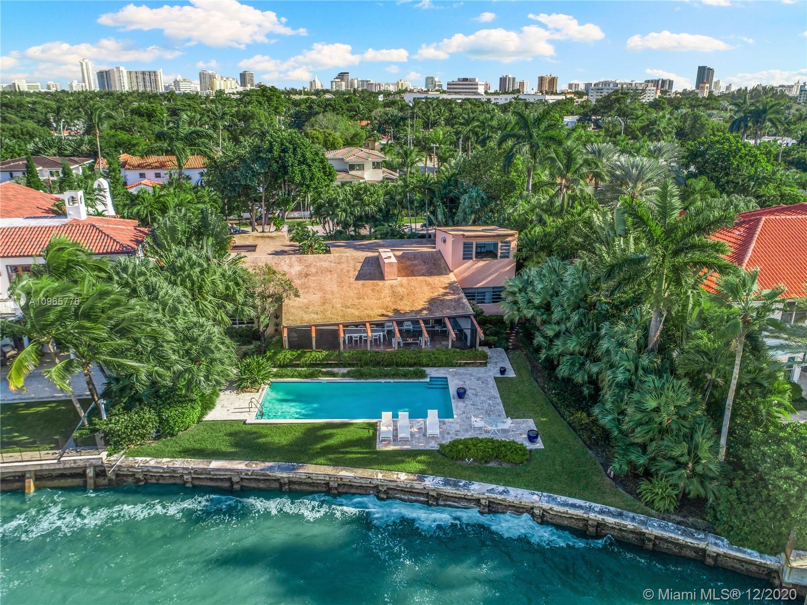 True mid century modern gem located on the most sought after location of prestigious North Bay Rd. Enter into this unique architecturally designed home surrounded by lush landscaping through wooden gates and an open foyer entry where you will find high ceilings and great walls for art throughout. The functional indoor outdoor living make it the perfect home for entertaining. Enjoy the bay breeze and breathtaking sunset views from the outdoor oasis that offers over 100+ ft of water frontage and unobstructed bay views.