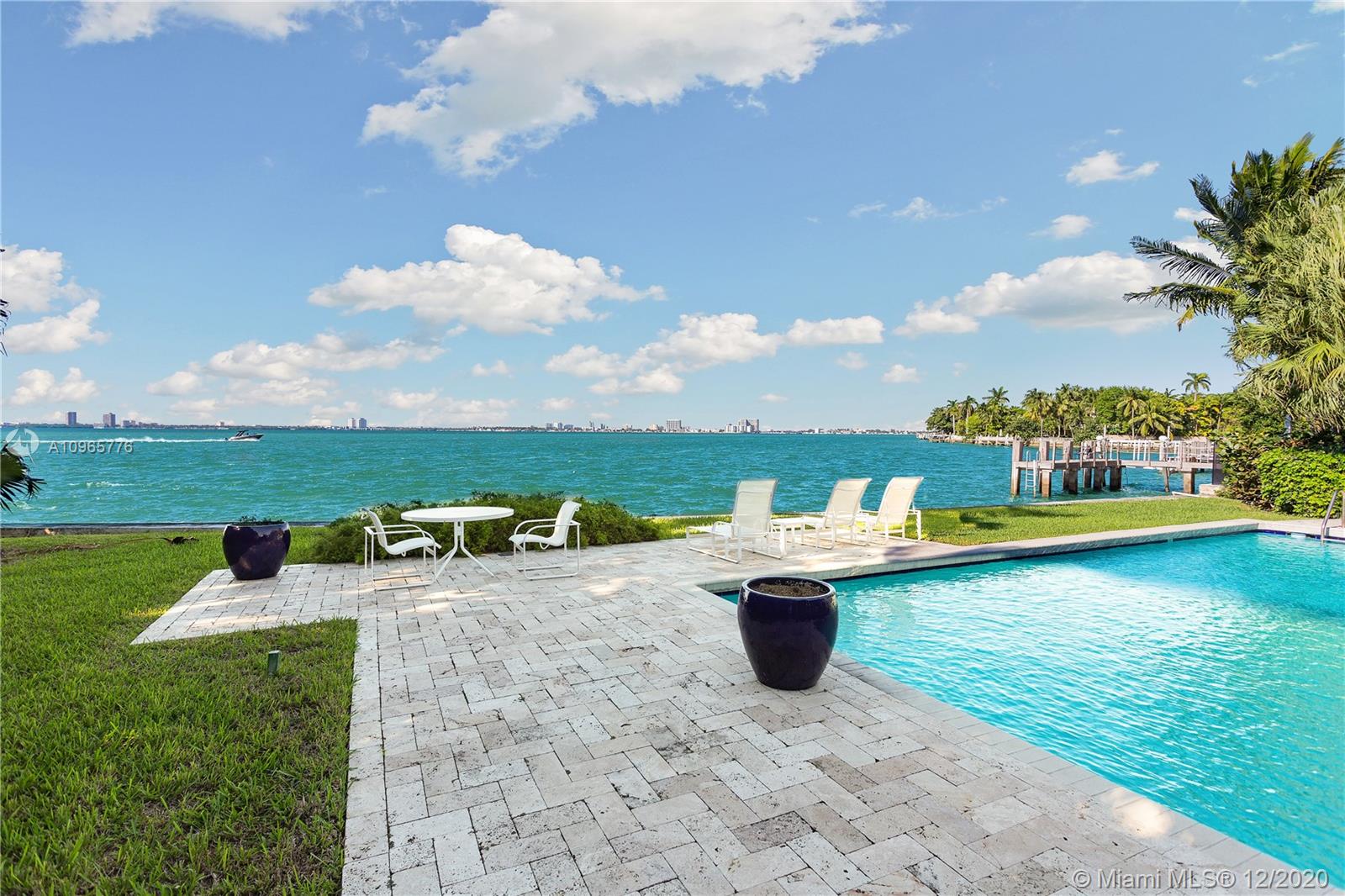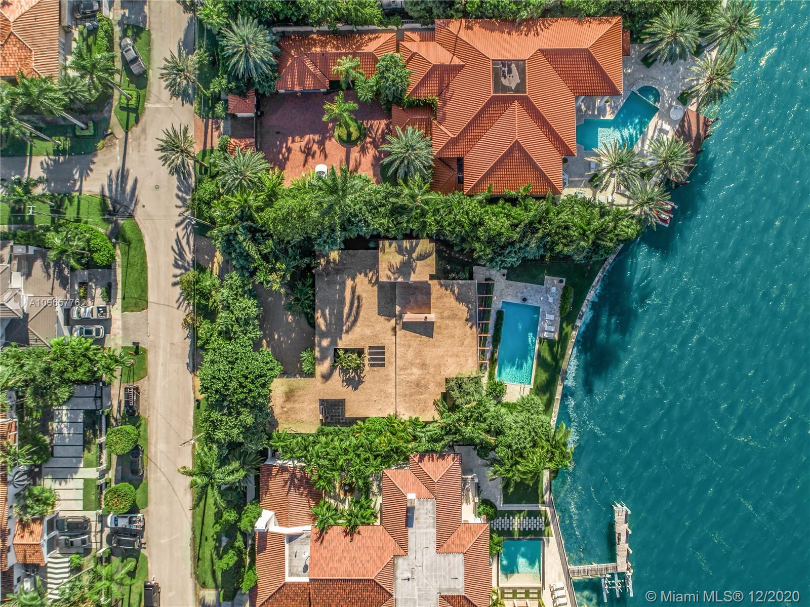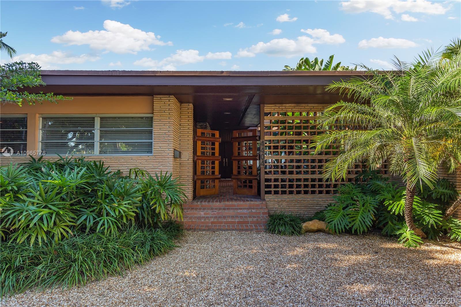 True mid century modern gem located on the most sought after location of prestigious North Bay Rd. Enter into this unique architecturally designed home surrounded by lush landscaping through wooden gates and an open foyer entry where you will find high ceilings and great walls for art throughout. The functional indoor outdoor living make it the perfect home for entertaining. Enjoy the bay breeze and breathtaking sunset views from the outdoor oasis that offers over 100+ ft of water frontage and unobstructed bay views.